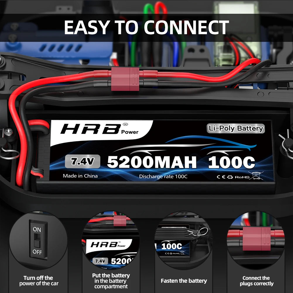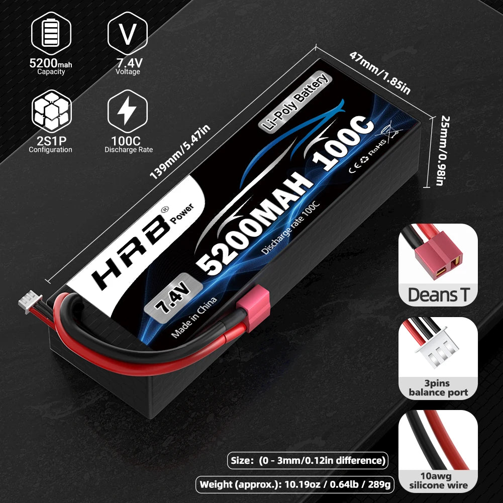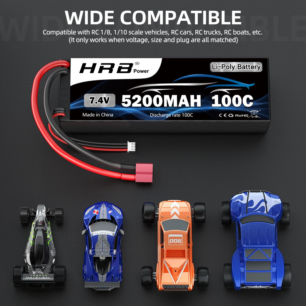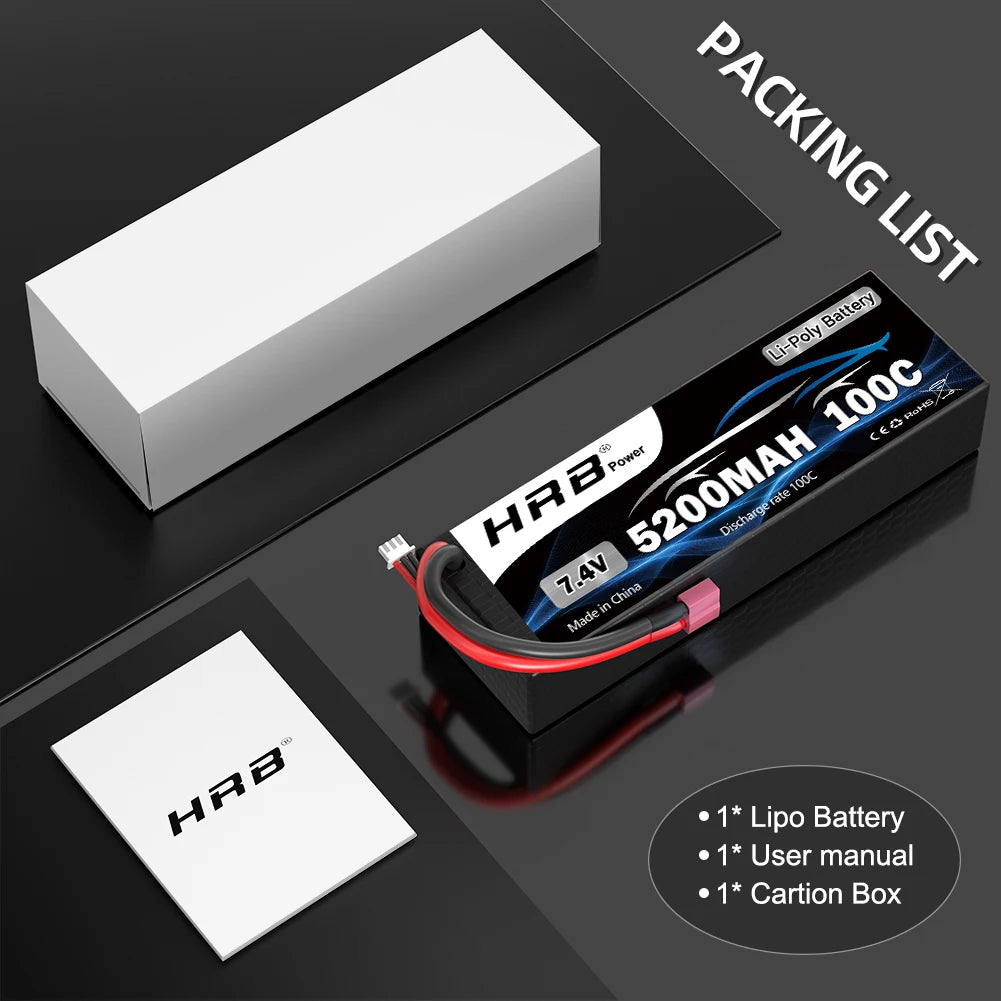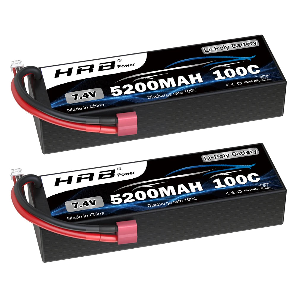 1/2pcs HRB 2S 7.4V 5200mah Lipo Batteria 100C RC Auto Batteria con T Deans Spina Custodia Rigida Batteria per RC Auto Camion Serbatoio 1/10 1/12