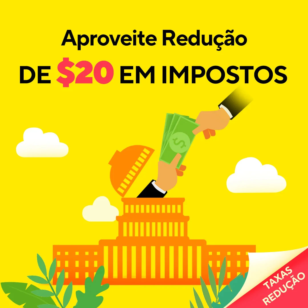📣 Ótima notícia! Pedidos a partir de $50 receberão um desconto de $20 (com a redução direta de impostos). Não perca!