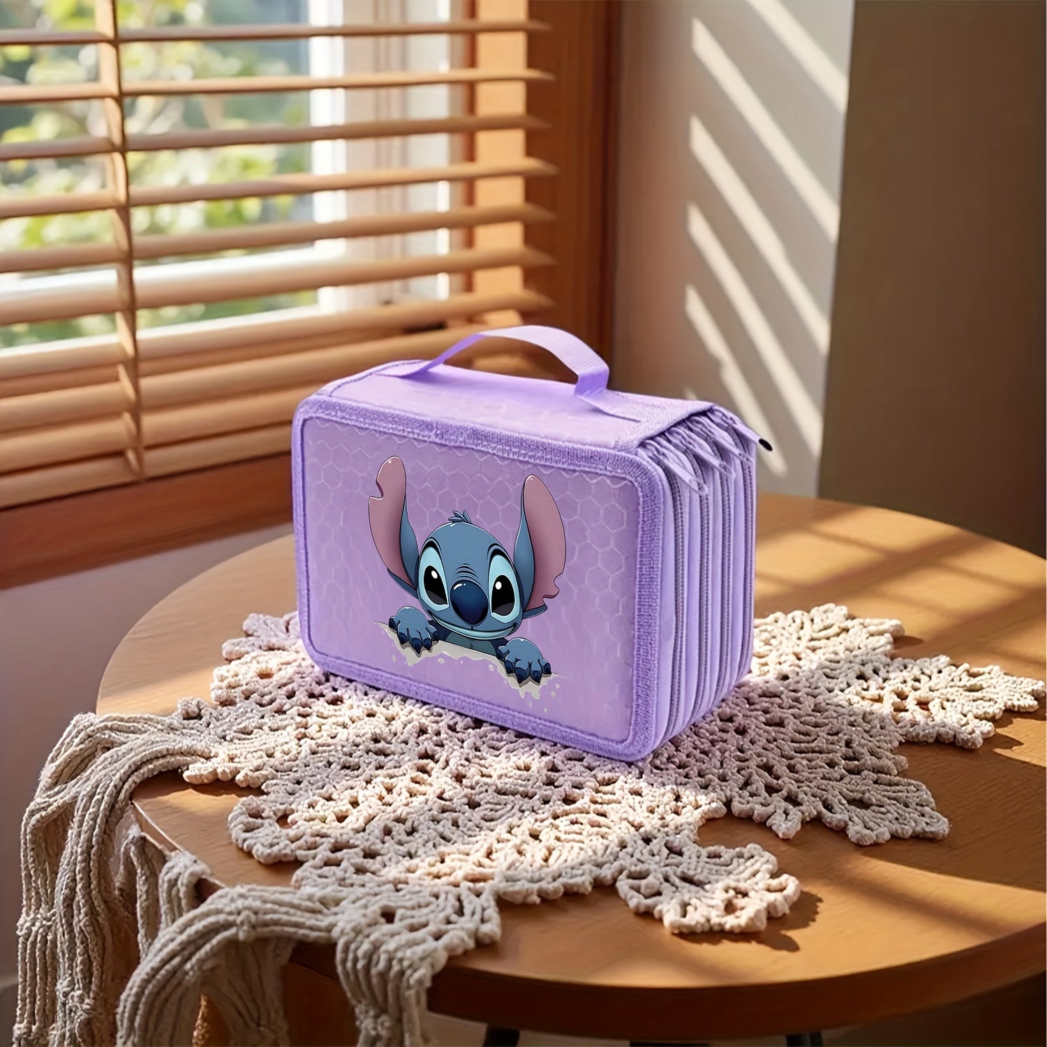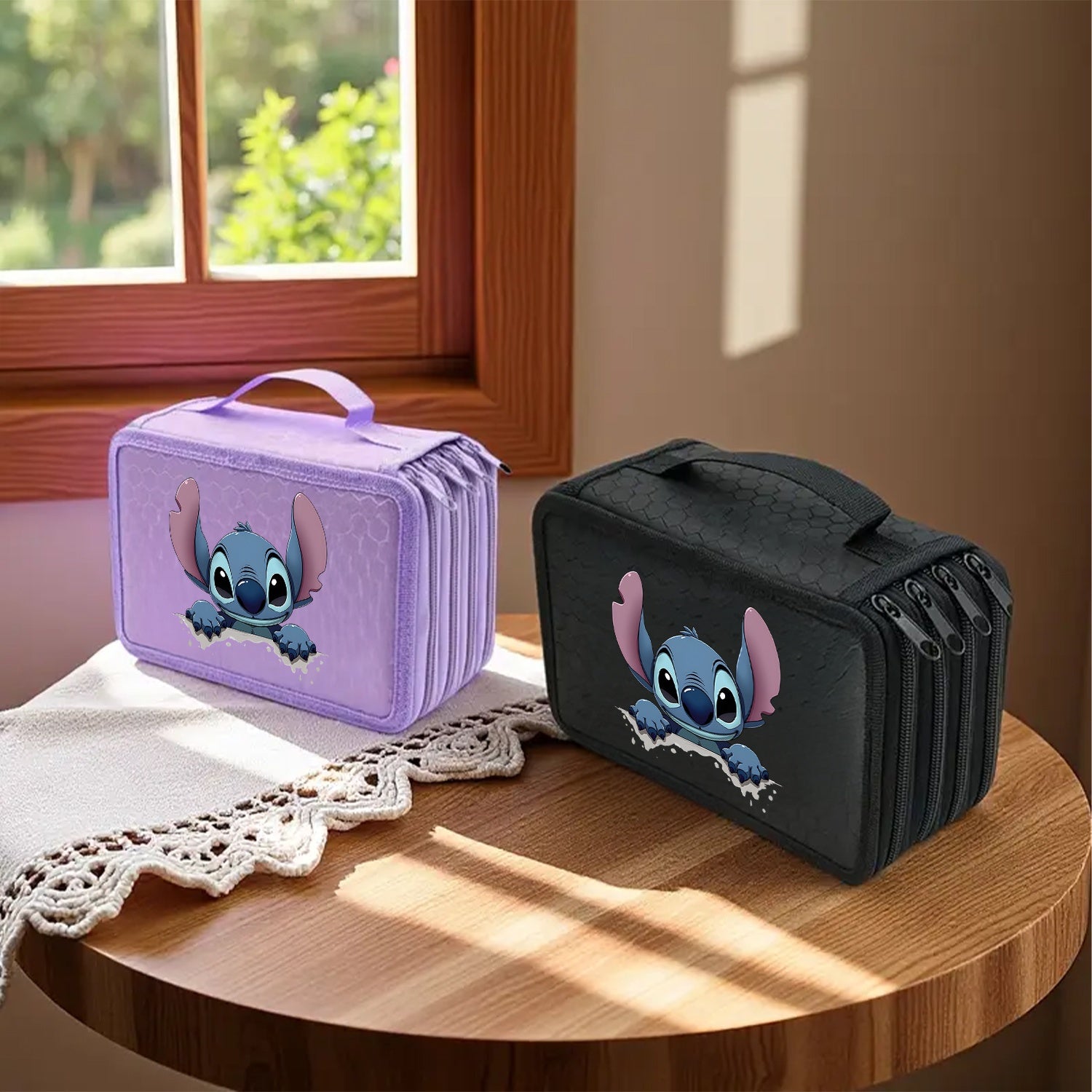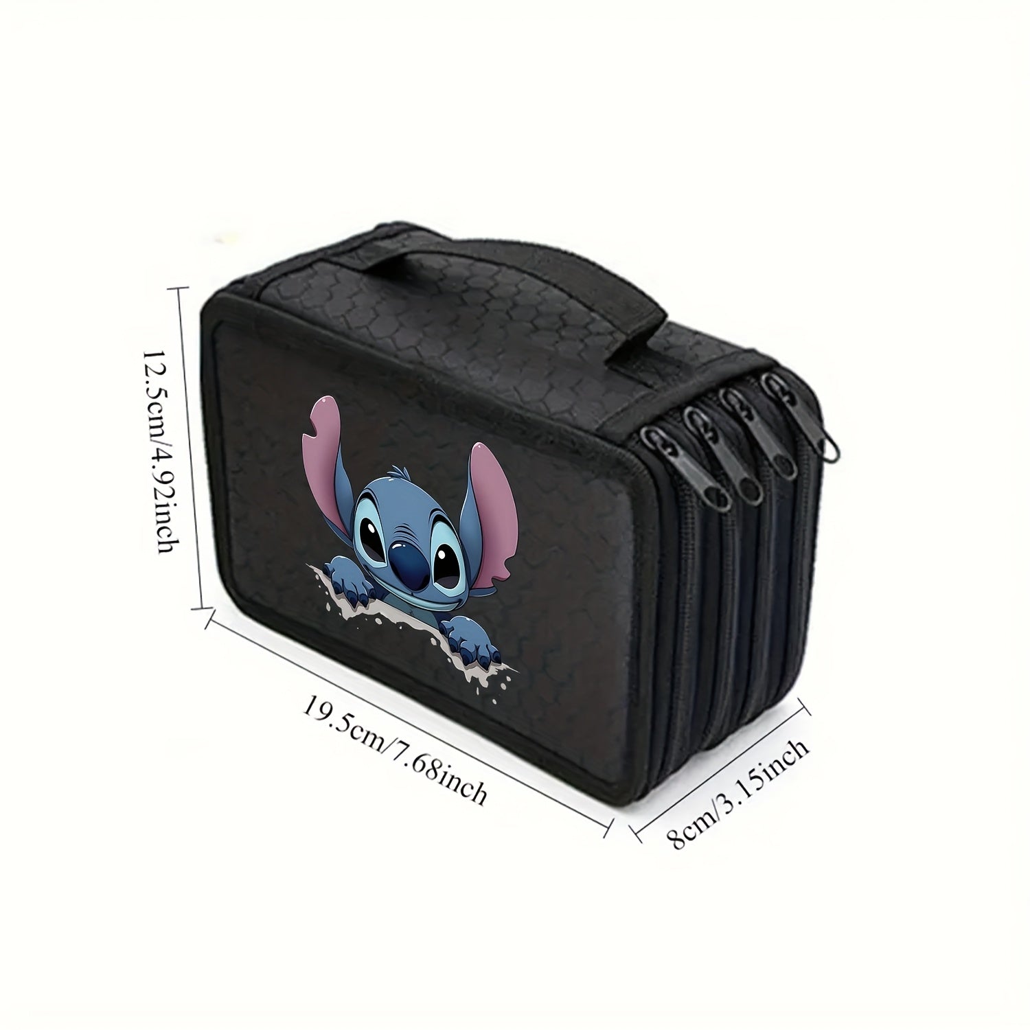 1 Astuccio Stitch & Lilo a Quattro Strati in Tela - Borsa Portatile per Matite con Scomparti Multipli, Chiusura a Cerniera e Tracolla, Regalo Perfetto per Artisti, Amici e Famiglie, Motivi Divertenti, Zip Sicuro