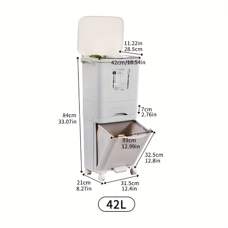 1-Pack Doppio Strato Grande Capacità Cestino Della Spazzatura, 38L/10.03 Galloni, 42L/11.09 Galloni, Cestino Della Spazzatura Movelibile Con Ruote, Separazione Umidità E Secco Dispositore Della Spazzatura, Cestino Della Spazzatura Domestico Di Piccola Cap