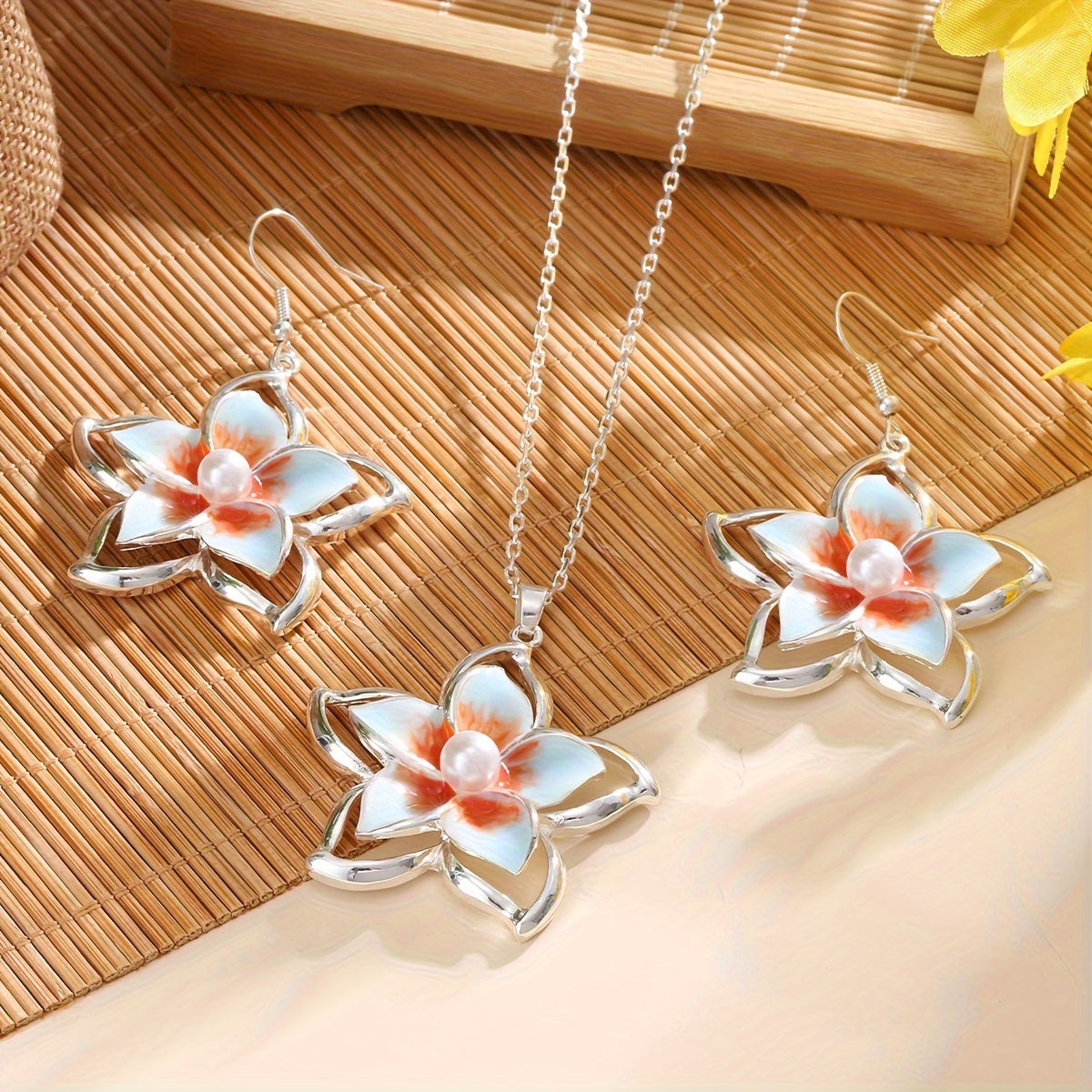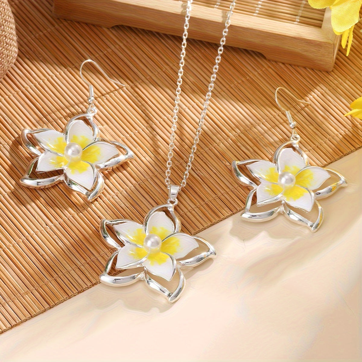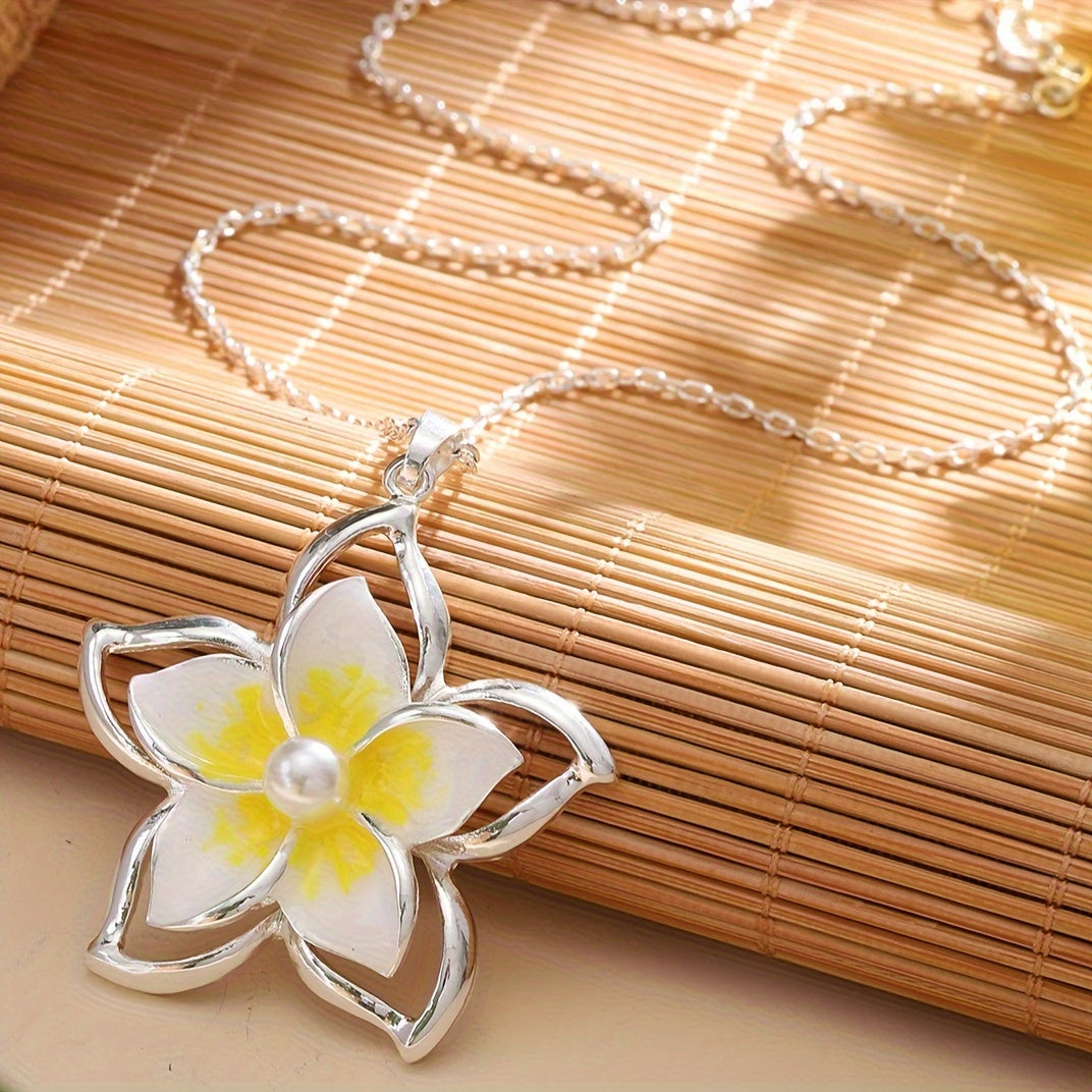 CRING COCO 1 paio di orecchini 1 collana moda estiva da donna Hawaii Samoa vacanza Frangipani grandi fiori set di gioielli accessori per feste regalo