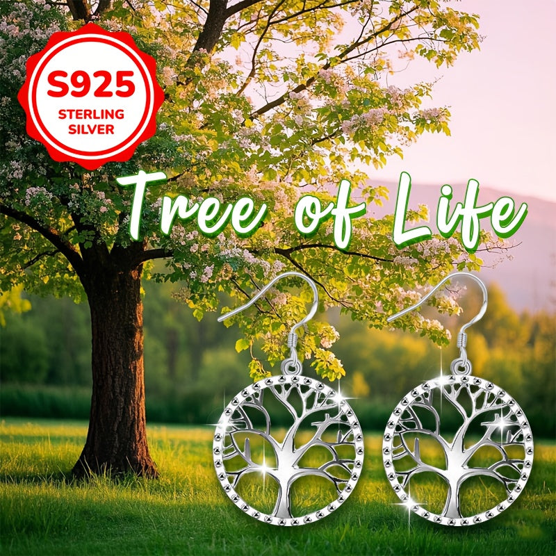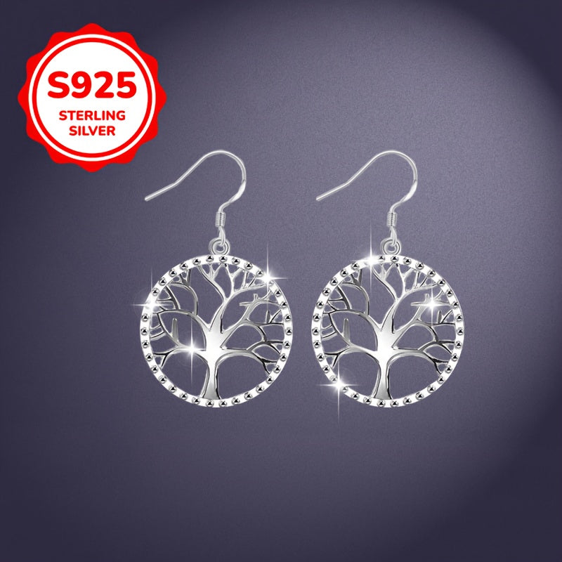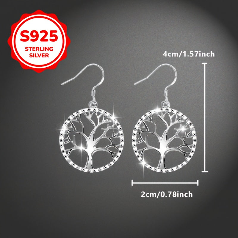 1 Paio di Orecchini a Pendente Vintage Classici albero della Vita, Argento Sterling 925, Leggero 2,3g, Iperallergenico, Elegante Design Semplice, Perfetto per San Valentino, Festa della Mamma, Stagione di Matrimonio, Tutte le Stagioni, Banchetti e Celebra