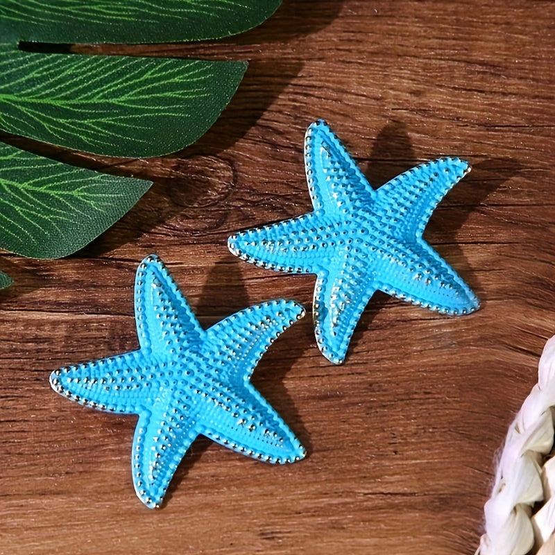 1 Paio di Orecchini Estivi Ispirati all'Oceano con Stella Marina, Stile Vacanza, Accenti di Strass Blu, Accessorio di Gioielleria alla Moda per Donne, Orecchini Estivi