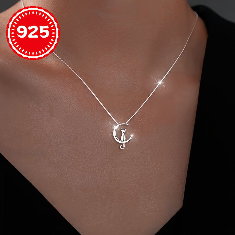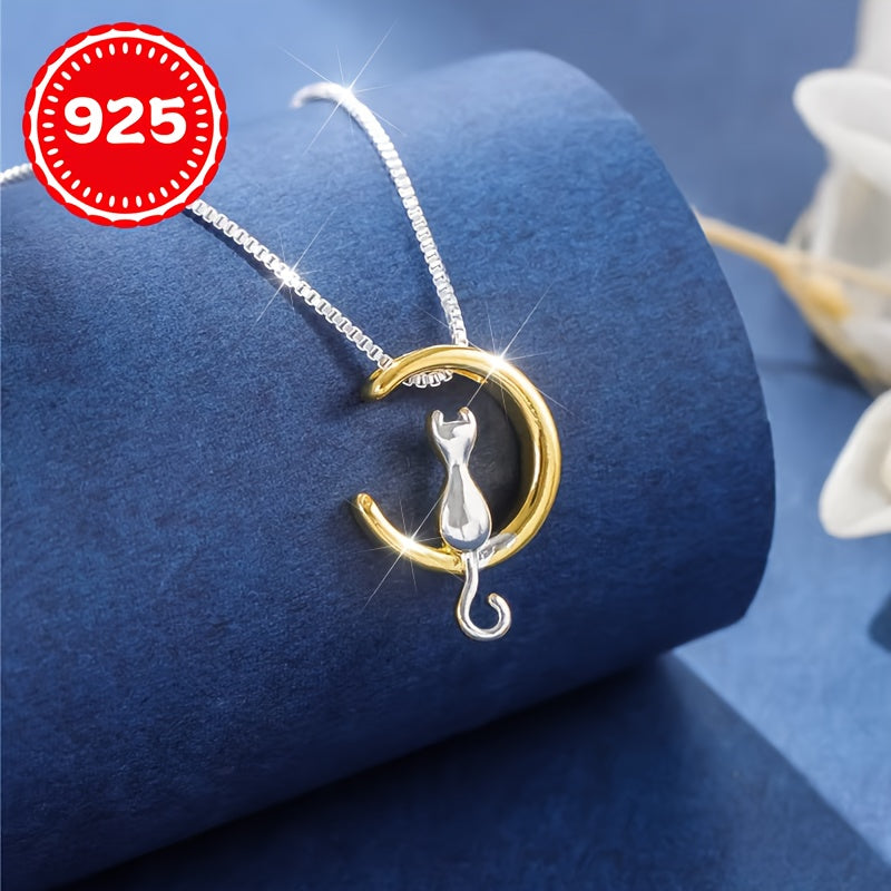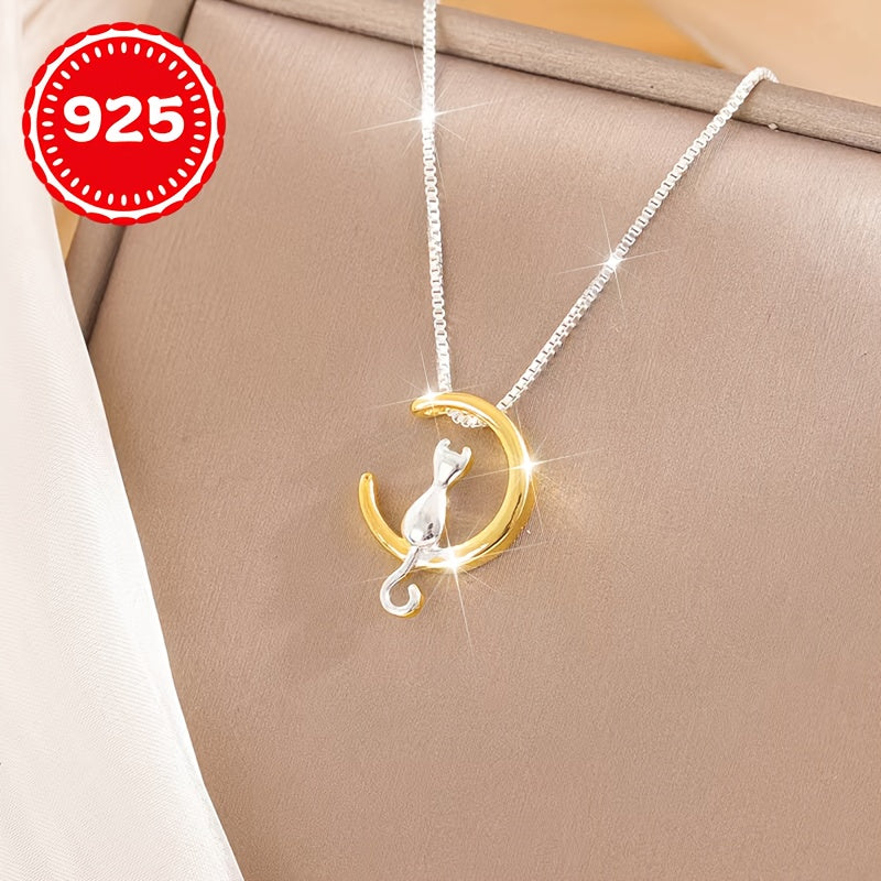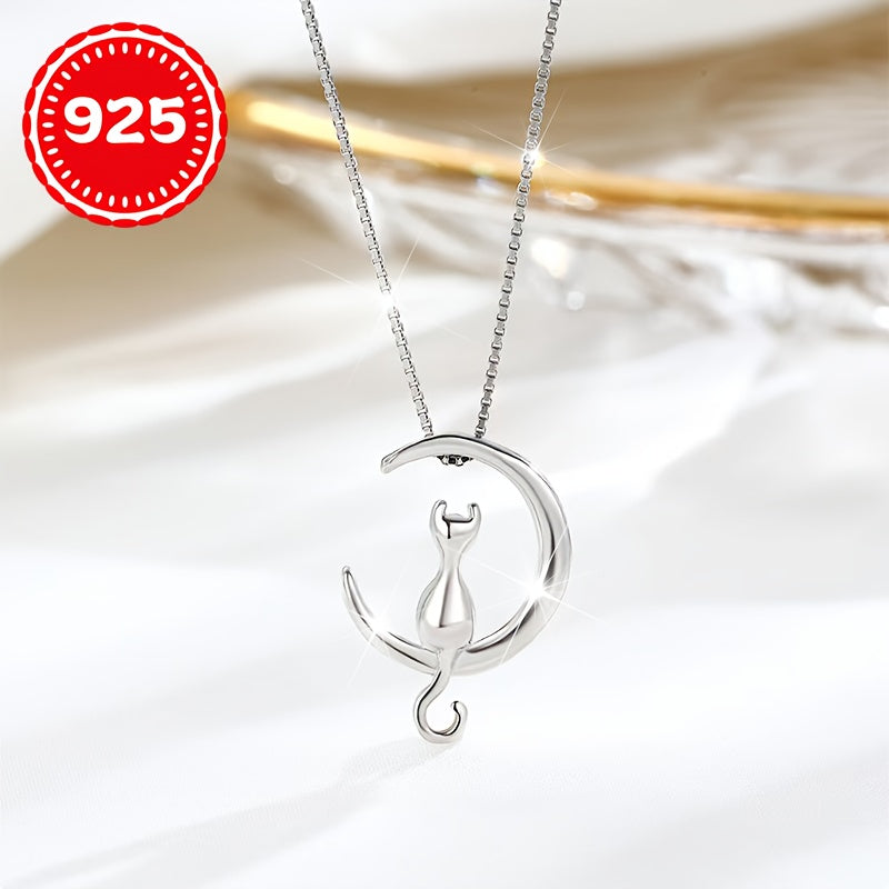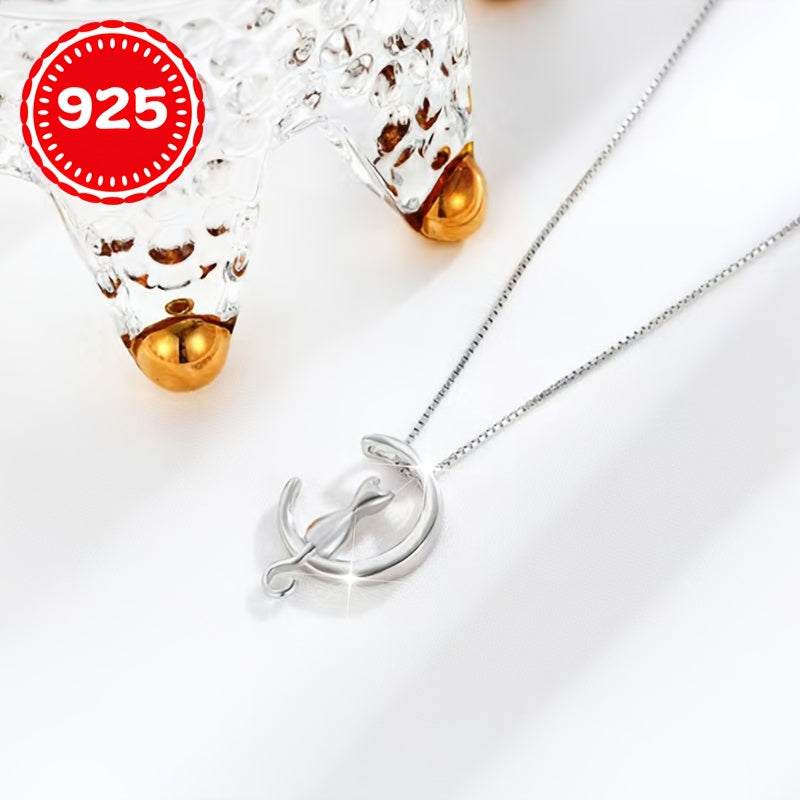 1 pezzo, Collana in Argento 925 Ipoallergenica con Pendente Gatto Lunare per Donna, Catena da Clavicola Design Unico, Regalo Perfetto per Coppie o Migliori Amiche, Ideale per Uso Quotidiano, Matrimoni, Feste, Vacanze al Mare, Ramadan, Confezione Anti-Ossi