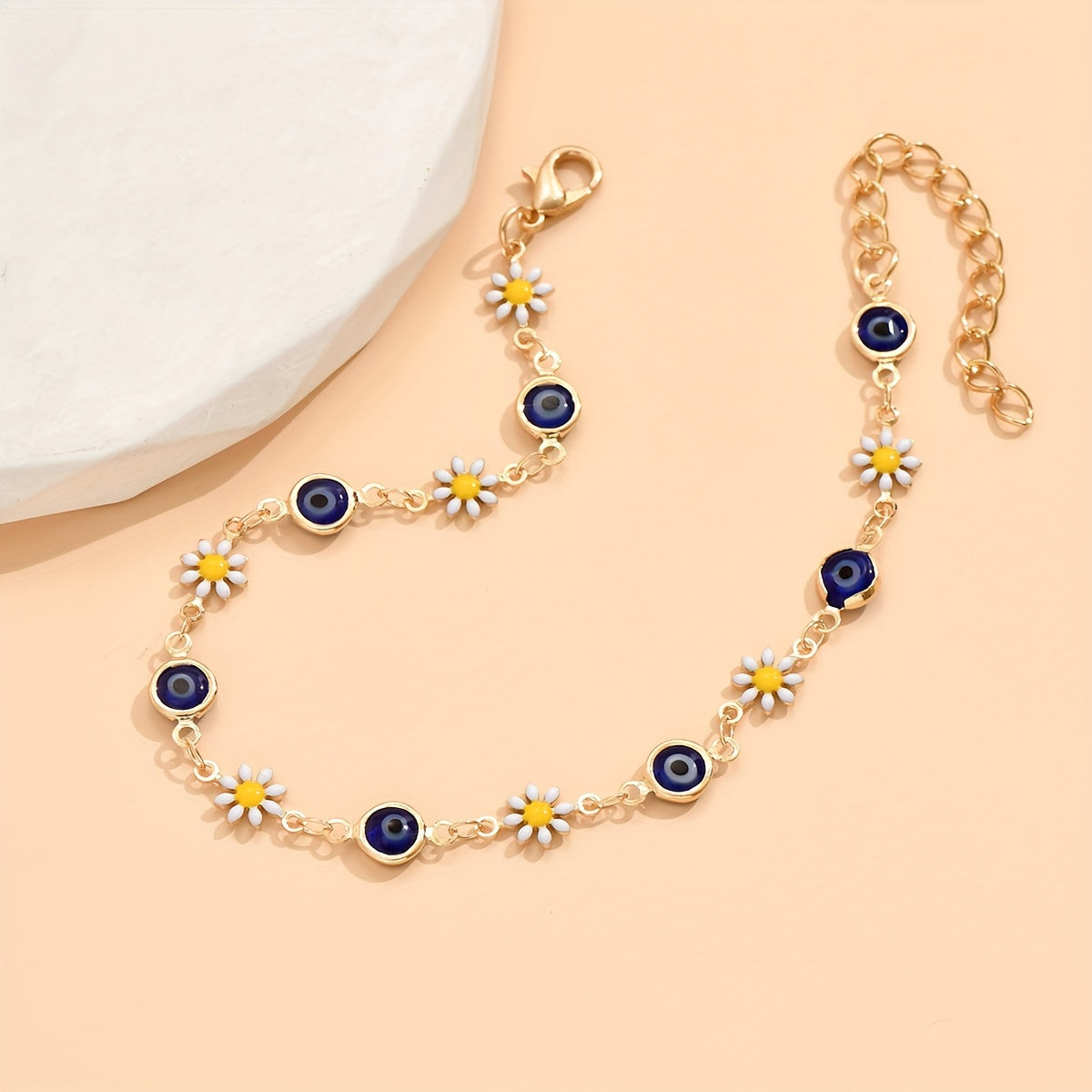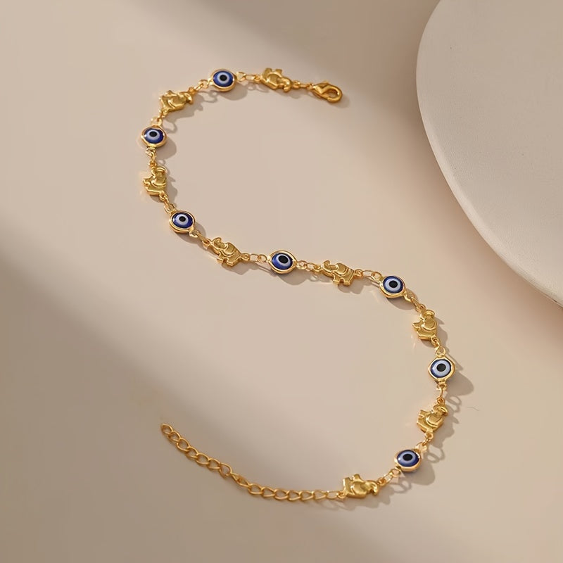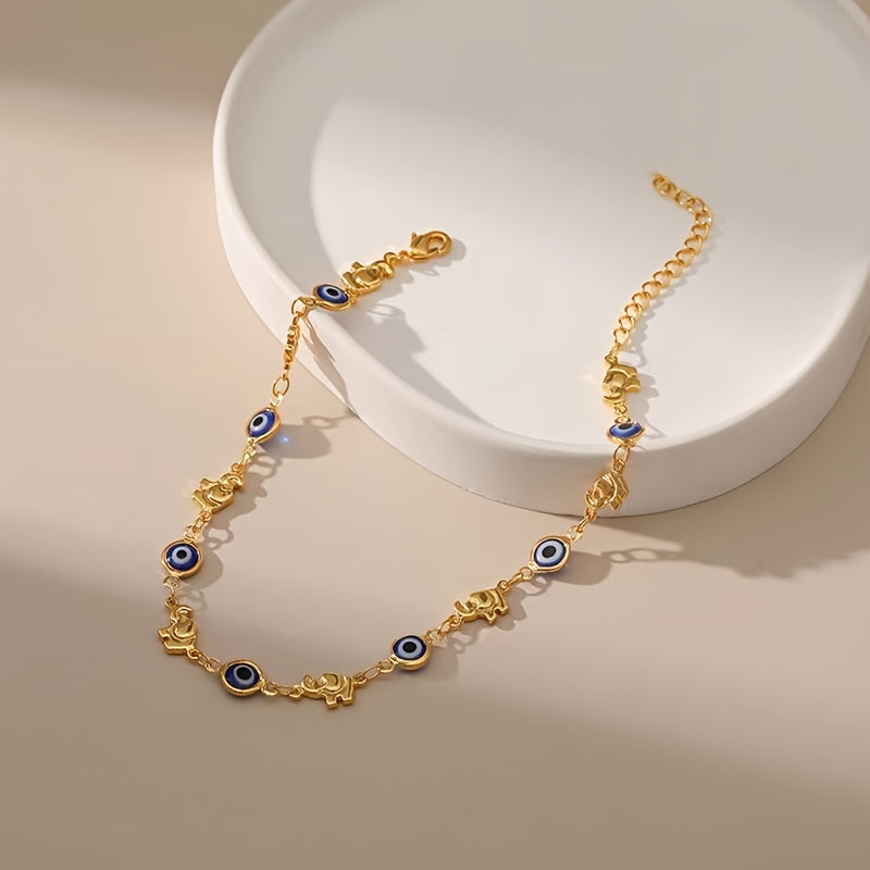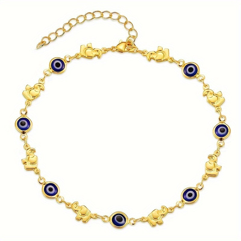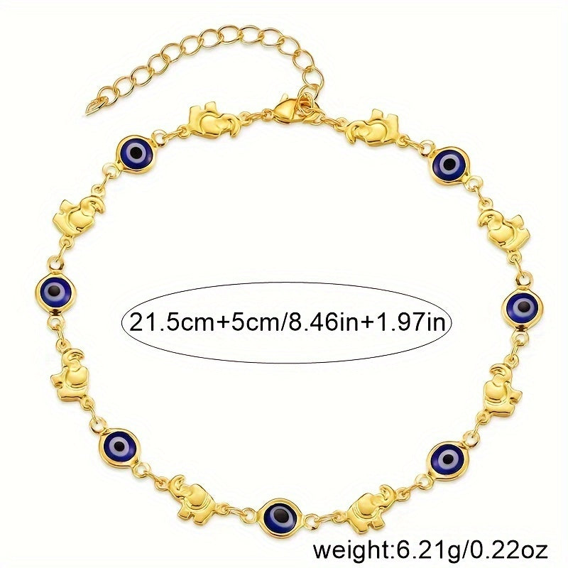 1 Pezzo Delicato Cavigliera Elefante Occhi Azzurri Design Ferro Gioielli Dorati Elegante Stile Bohemien Per Donne Estate Spiaggia Catena Per Piedi