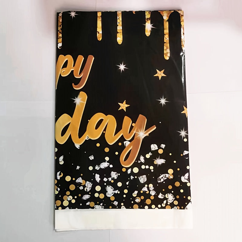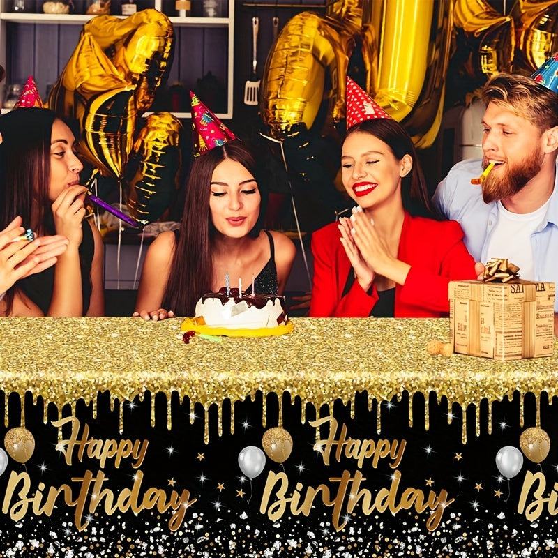 1 pezzo, Tovaglia Buon Compleanno, Copritavolo Rettangolare Nero E Dorato Decorazioni Per Feste BBQ Tea Party Anniversario Decorazioni Per Feste Di Compleanno Per Uomini Donne Regalo Di Pasqua Eid Al-Adha Mubarak