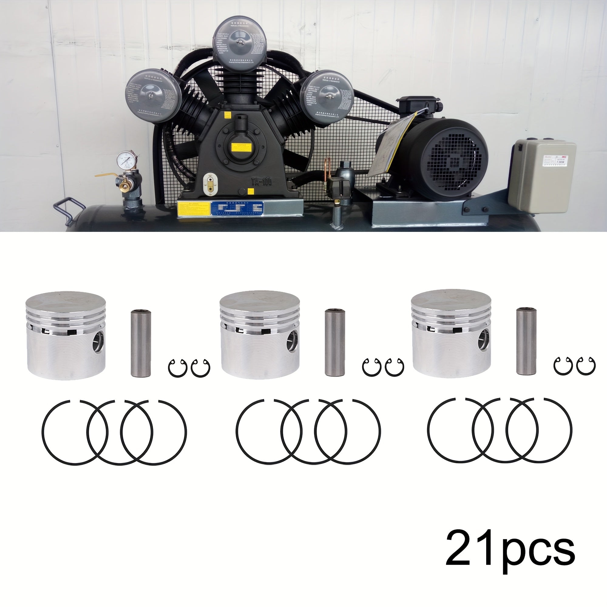 1 Set di 28 pezzi Kit di pistone per compressore d'aria con anelli di pistone, punta di pistone argento nero