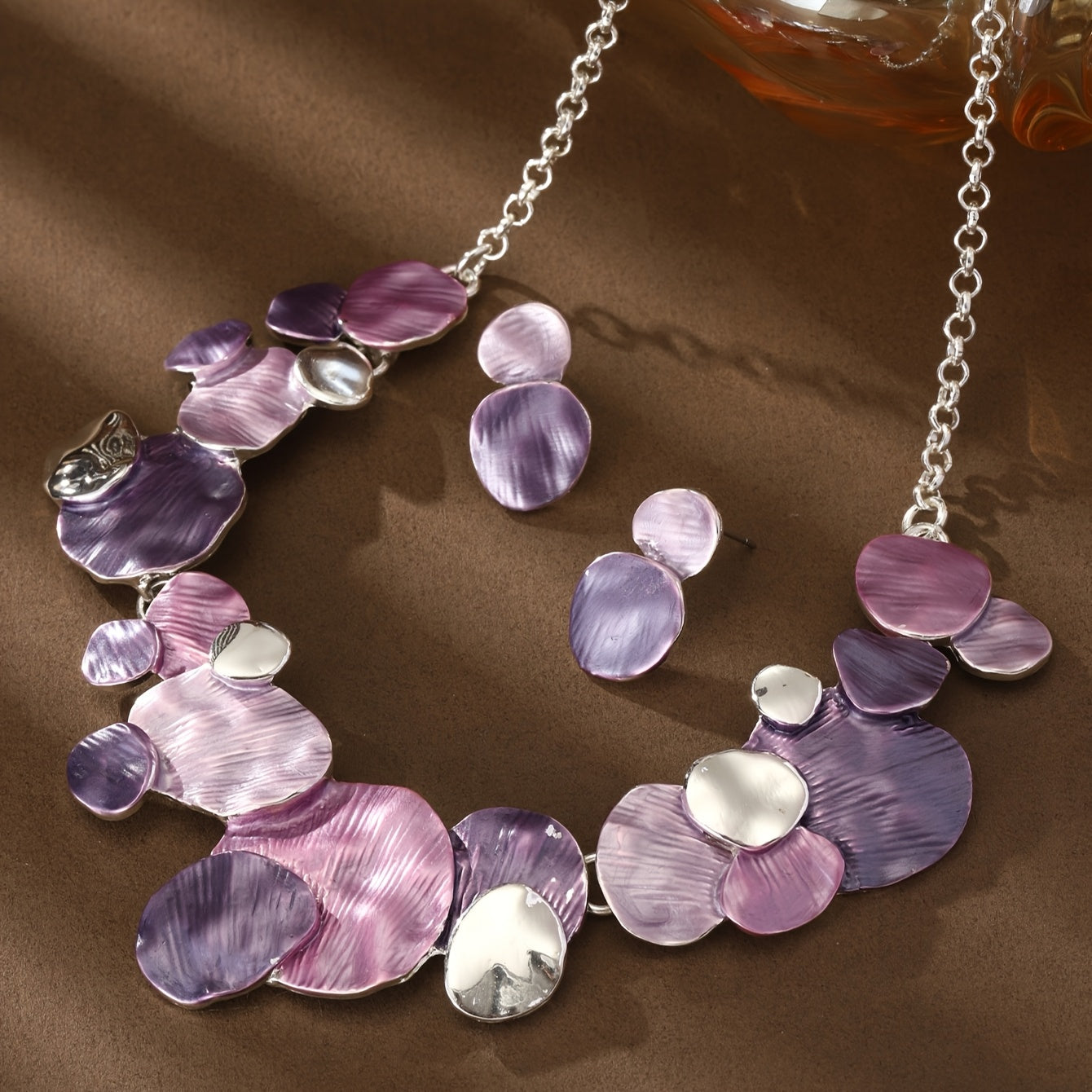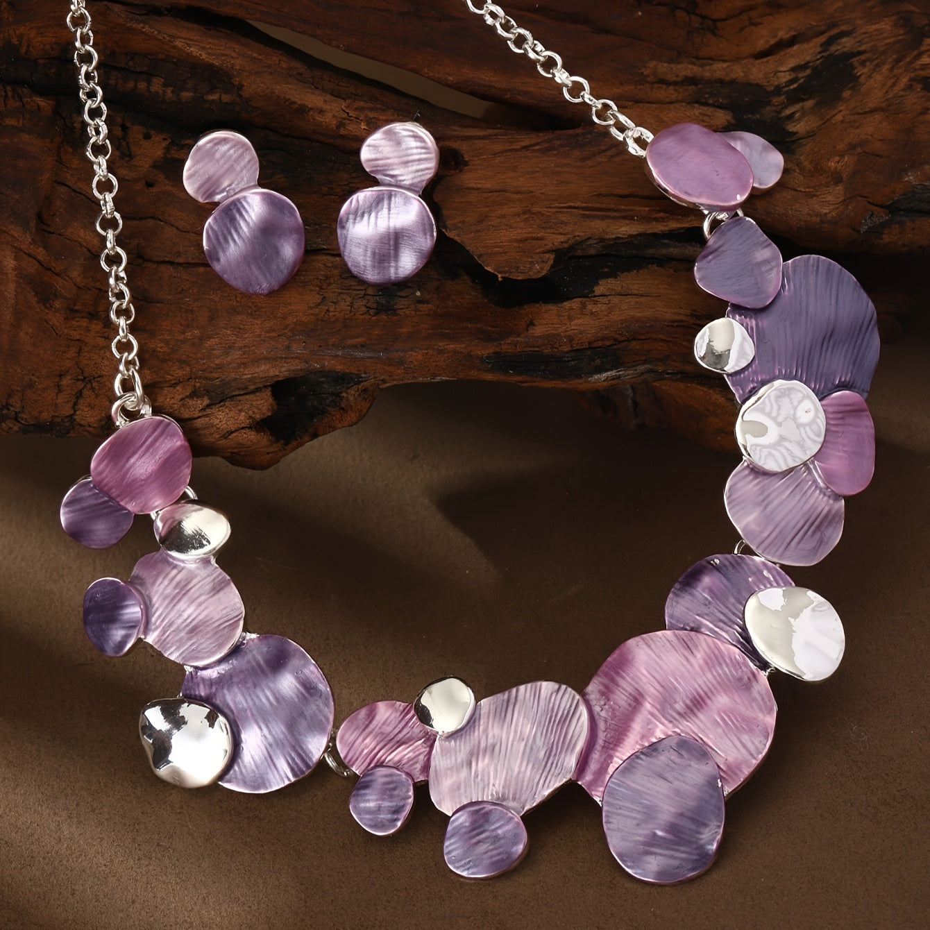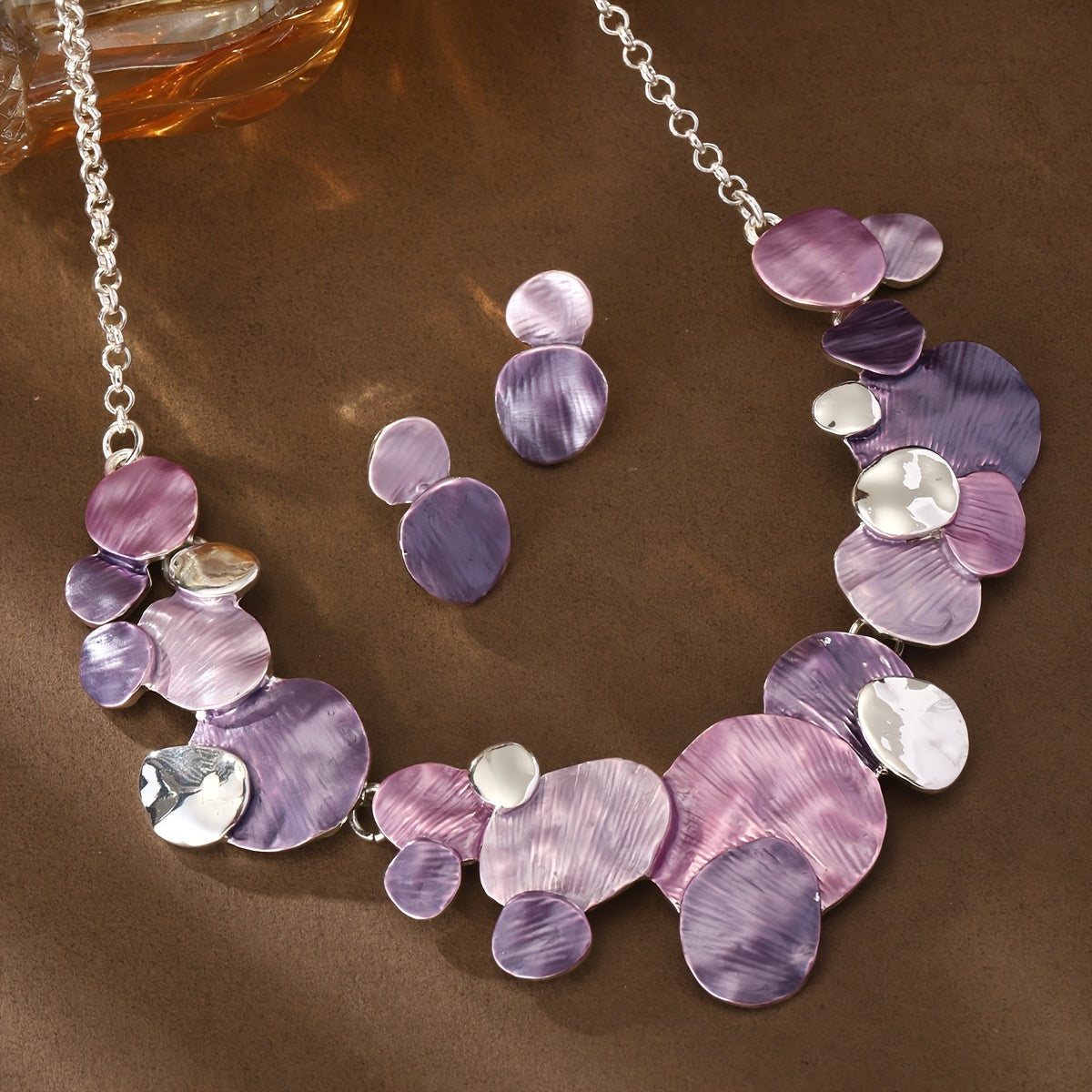 CRING COCO 1 Set di Gioielli da Donnaa in Lega di Zinco Rotondo con Pittura a Smalto Originale, Unico Colore Viola Bohémien Semplice Elegante e Carino, Accessori Perfetti per Costume da Festa Quotidiano o Matrimonio, Regalo per la Festa.