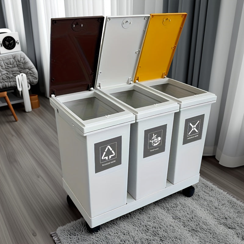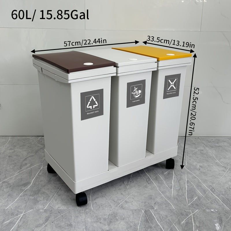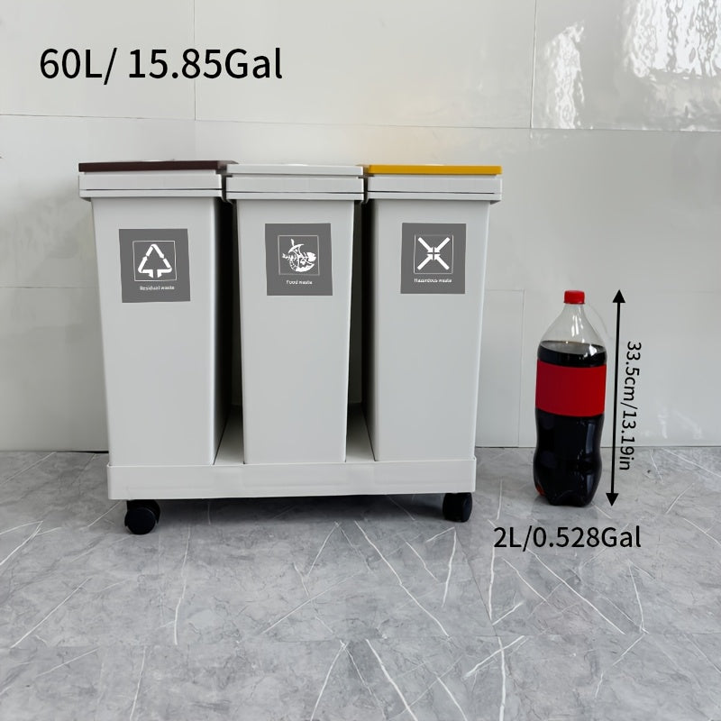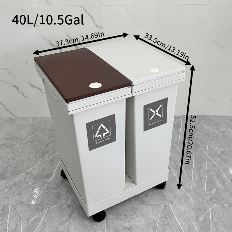 1 Set, Grande Contenitore Per Rifiuti Da Cucina, Separazione Dei Rifiuti Secchi E Umidi, Grande Contenitore Per Rifiuti Di Classificazione, Bari Interno Rimovibile, Movelbe, Con Ruote, Adatto Per Alberghi, Soggiorni, Uffici, Scuole