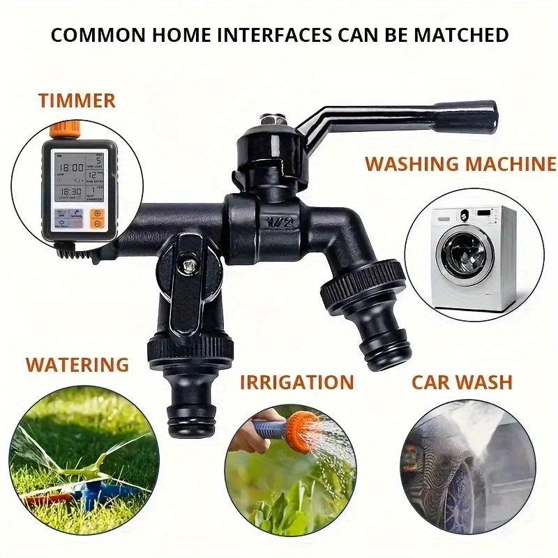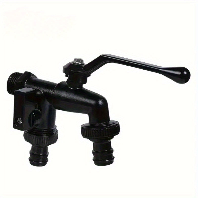 1 set Rubinetto Esterno in Lega di Zinco Nero Durevole con Connessione a Doppio Tubo - Antigelo, Design a Doppia Uscita, Adatto per Irrigazione Giardino e Collegamento Lavatrice, Include Nastro PFE e Guarnizione in Gomma, Rubinetto da Esterno