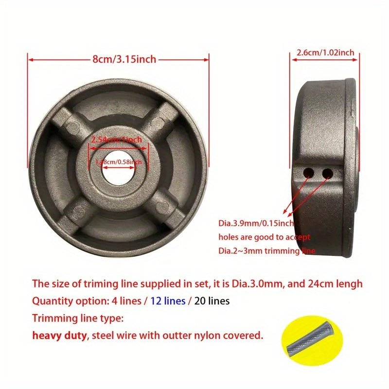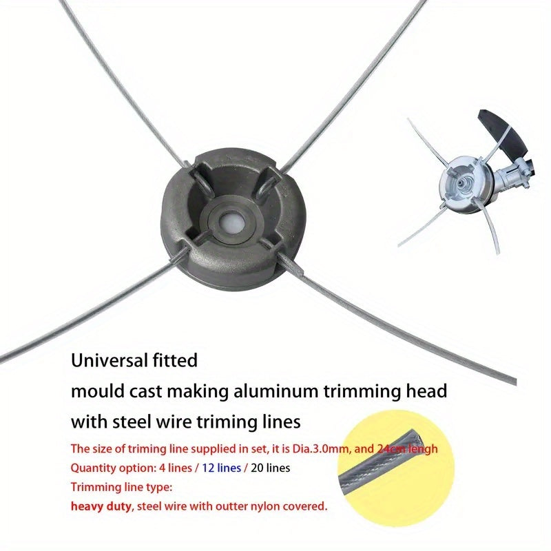 1 Testa Universale in Lega di Alluminio per Tagliabordi, Include 4/20 Fili d'Acciaio, Spazzola per Erba con Accessori in Nylon e Filo d'Acciaio - Resistente ed Efficiente, Regalo Ideale per Appassionati di Giardinaggio e Fai da Te