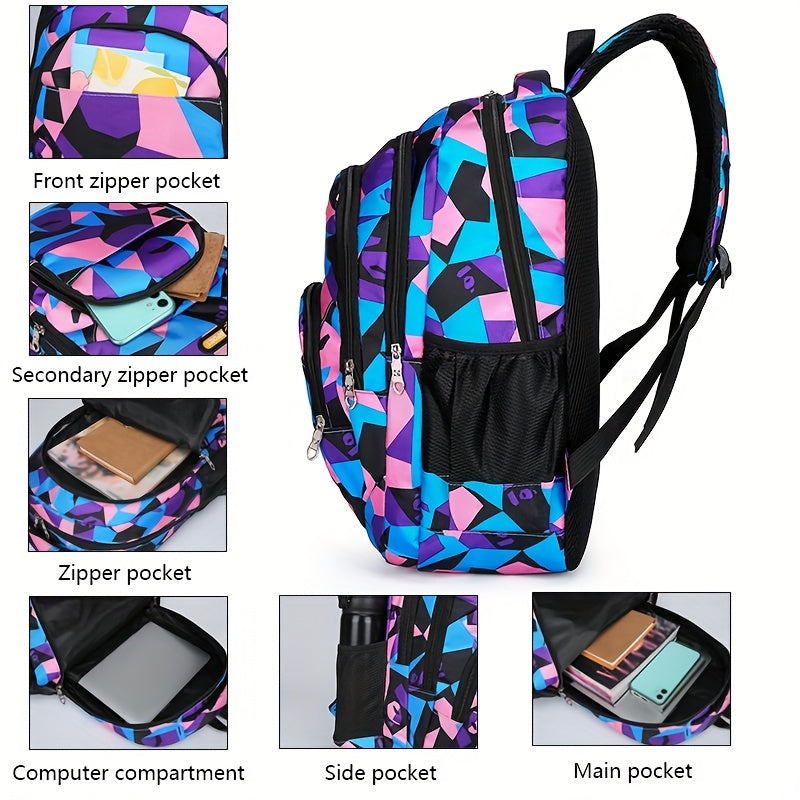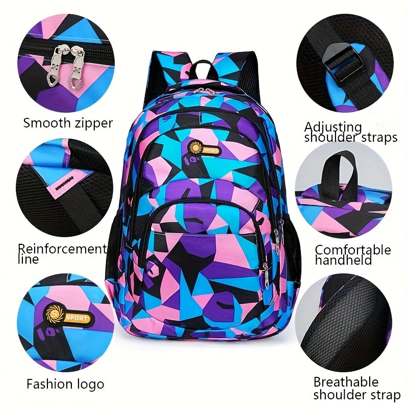 1 zaino casual alla moda in nylon leggero per donna, grande capacità, multifunzionale, con spallacci regolabili, chiusura a zip, fodera in poliestere e design con cuciture alla moda.