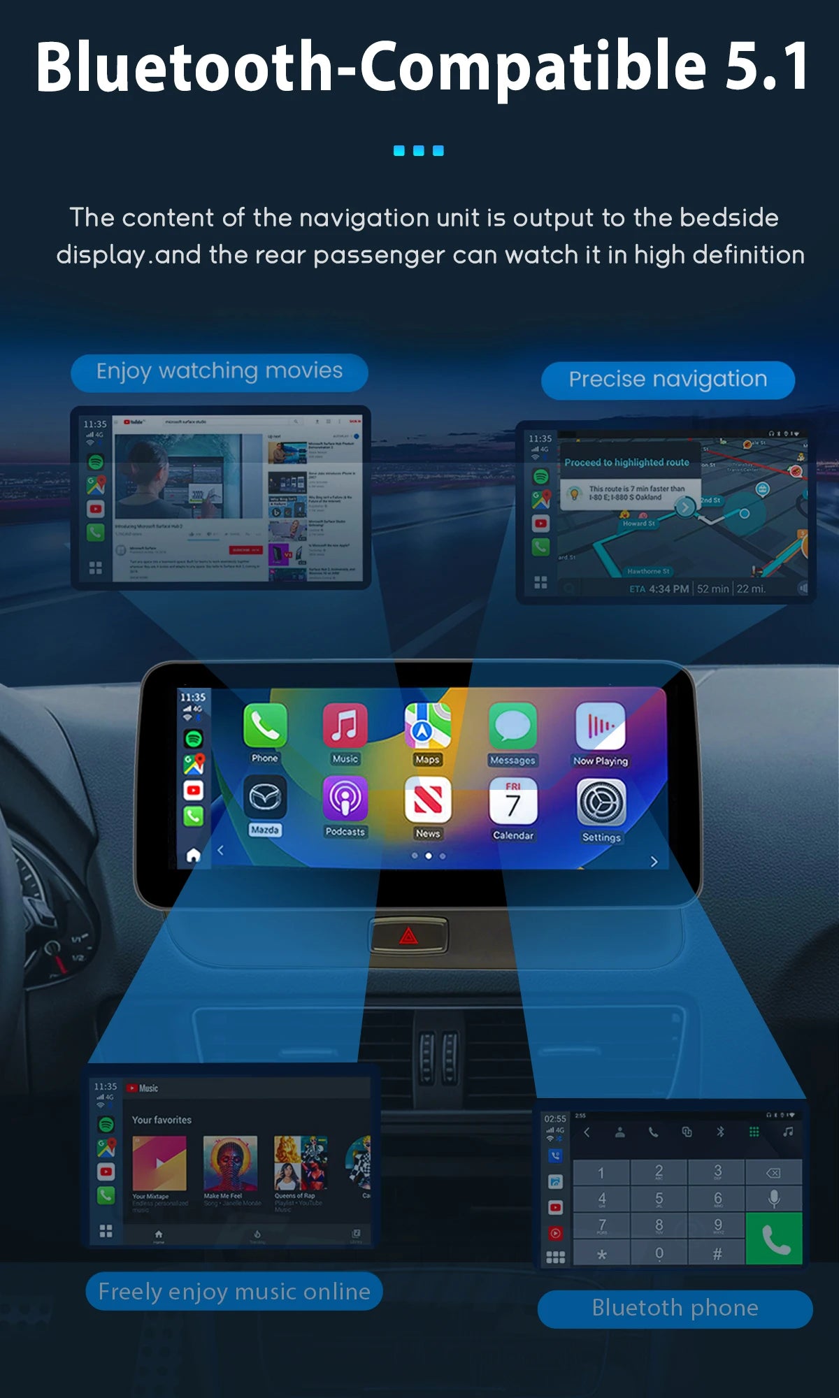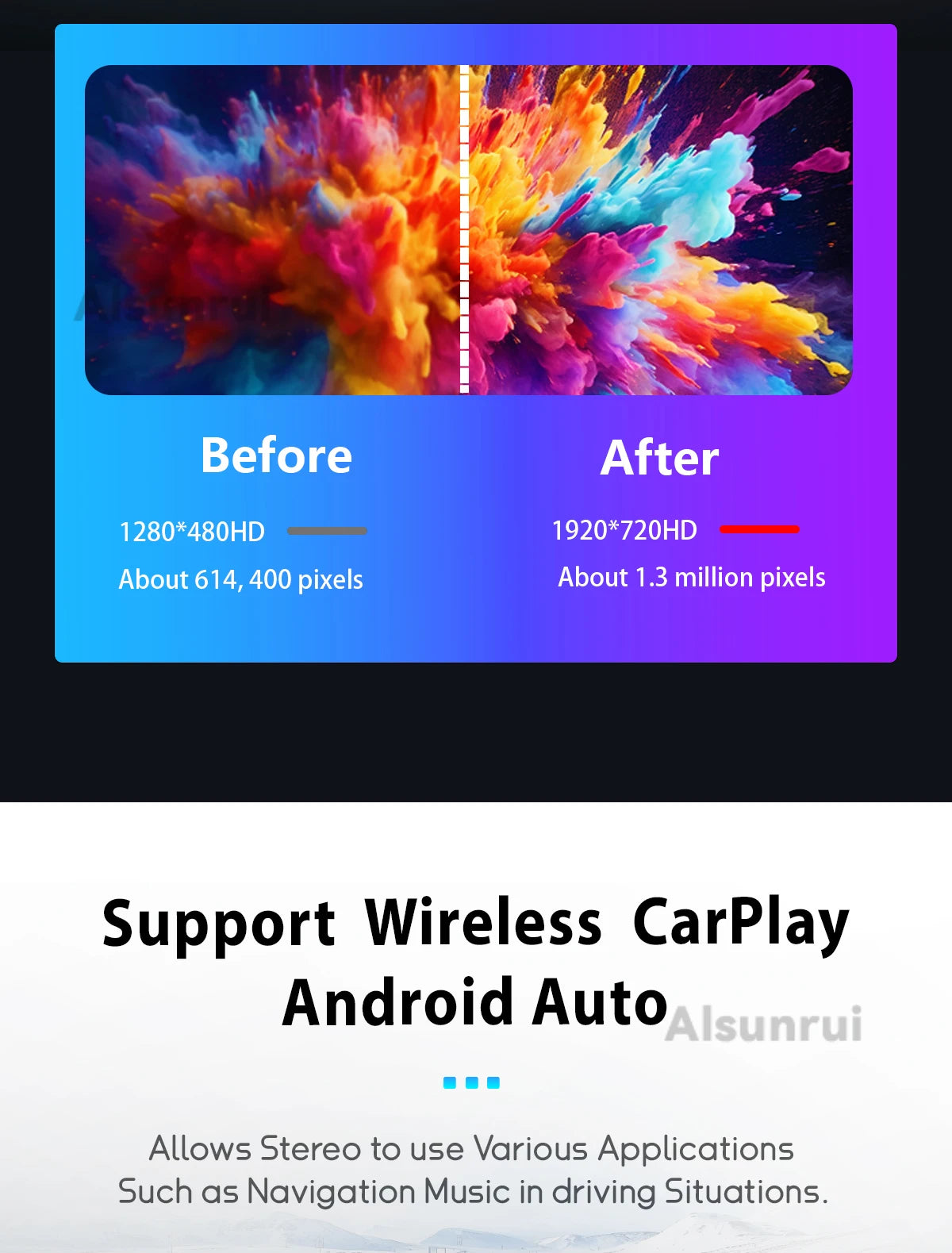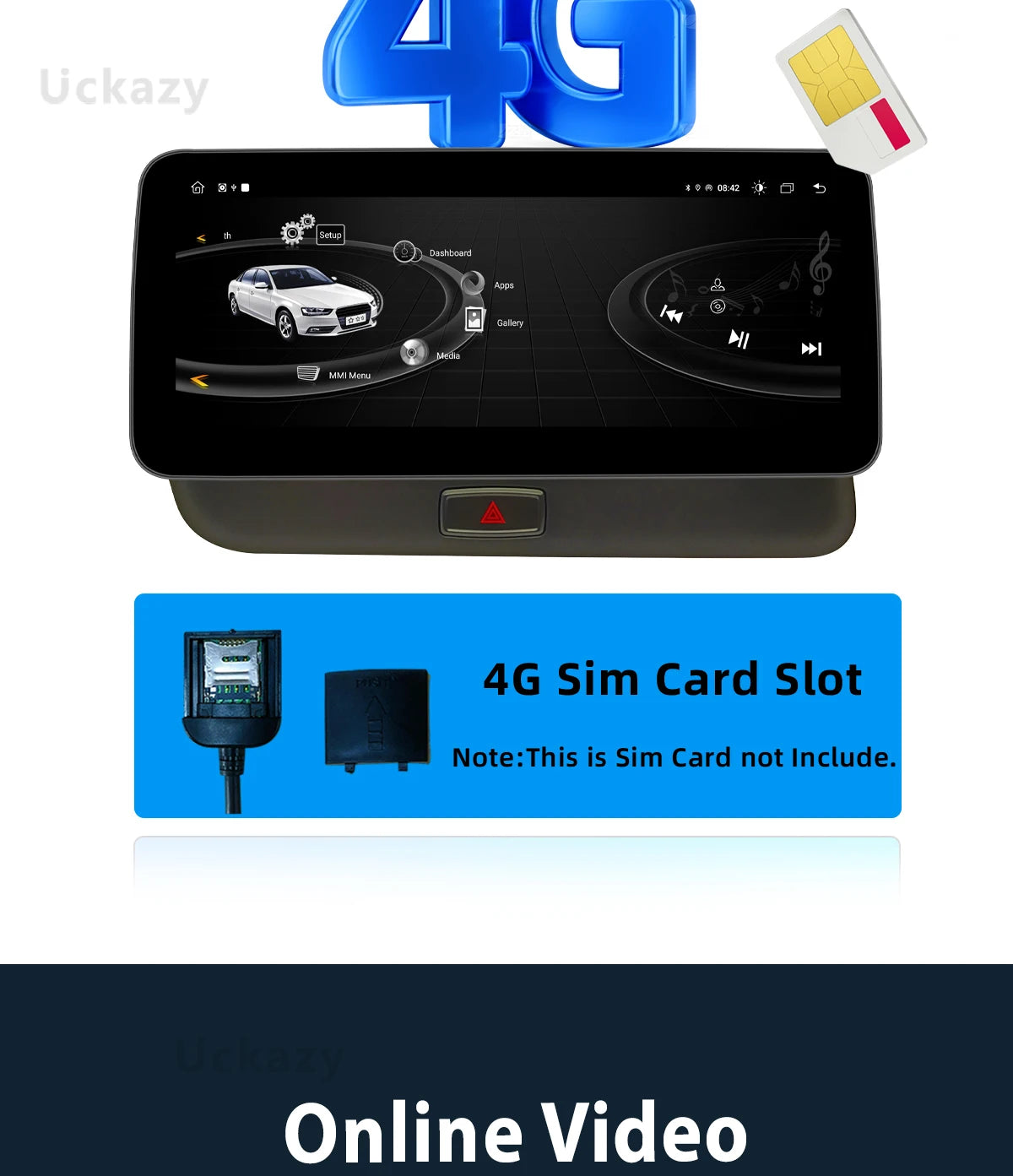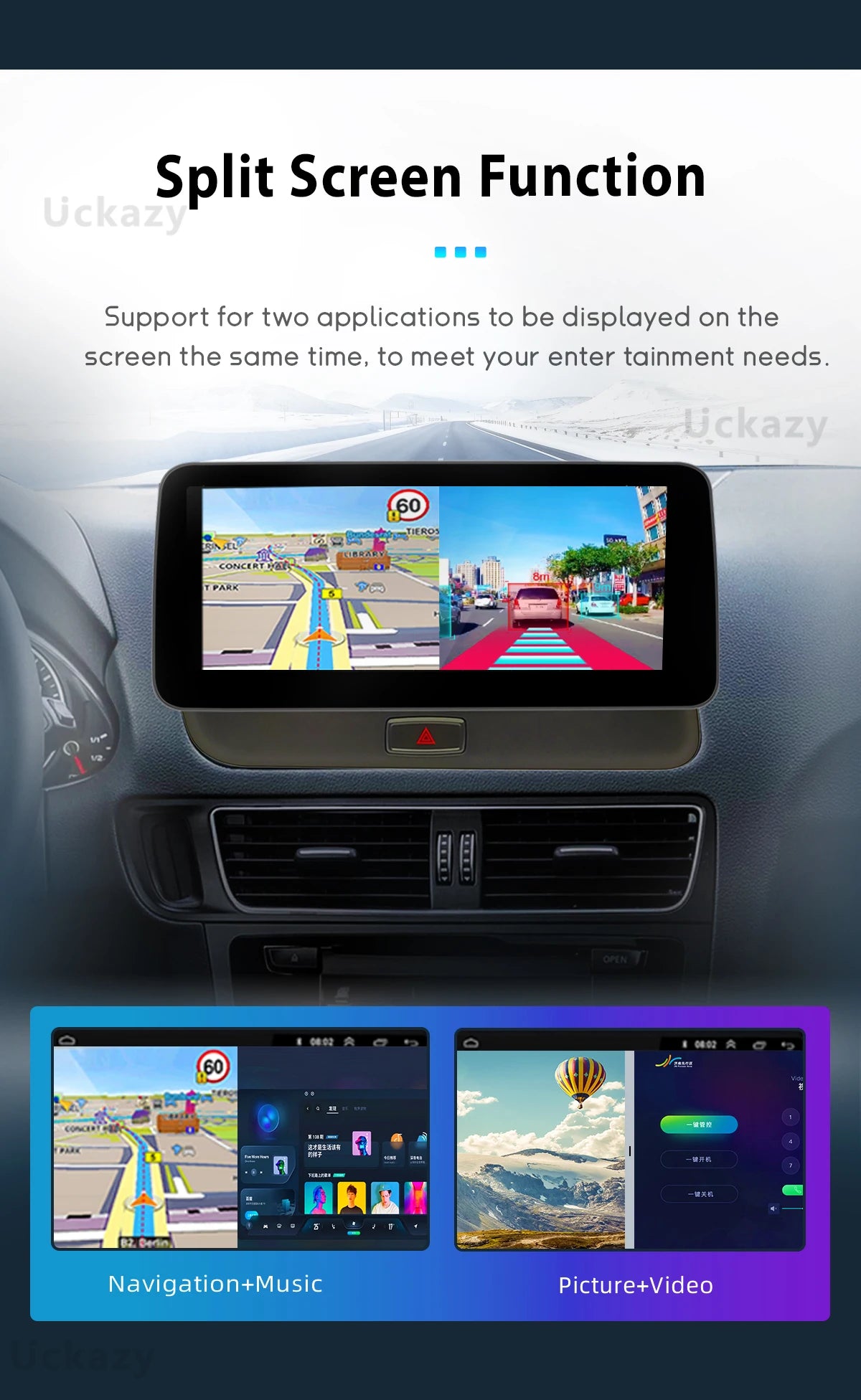 Function: 8 Core CPU Processor / 4GB RAM / 64GB ROM / GPS Navi / Google / WIFI / 4G SIM / BT / Wireless Carplay / Android Auto / USB / Music / Video / Split Screen / Steering Wheel Control / Support Rear Camera / Keep Car Original Function / Fast Boot Screen