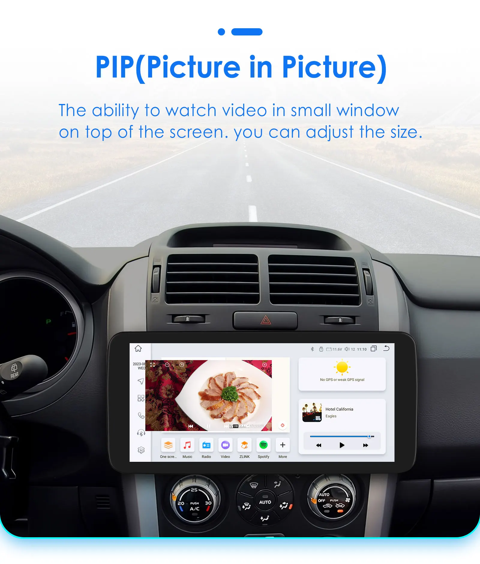 PIP(Picture in Picture): the ability to watch video in small window on top of the screen, you car adjust the size.