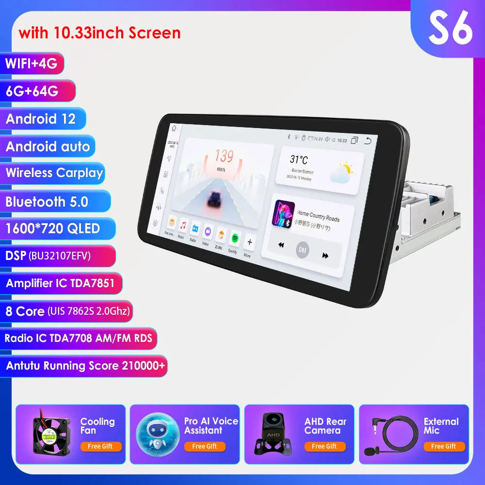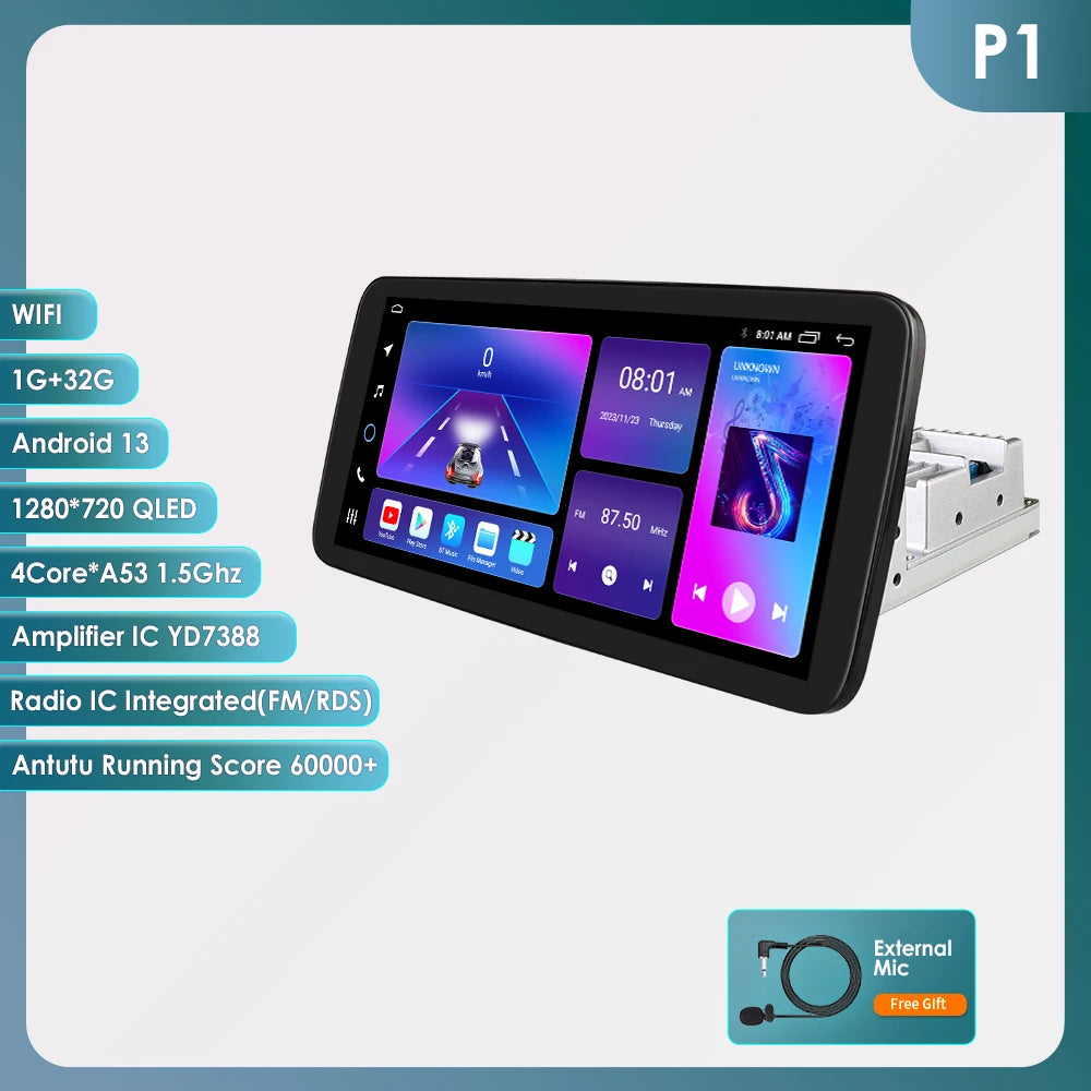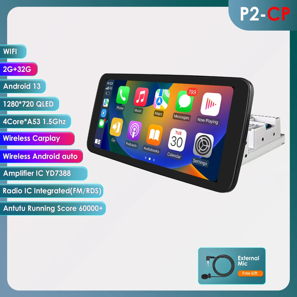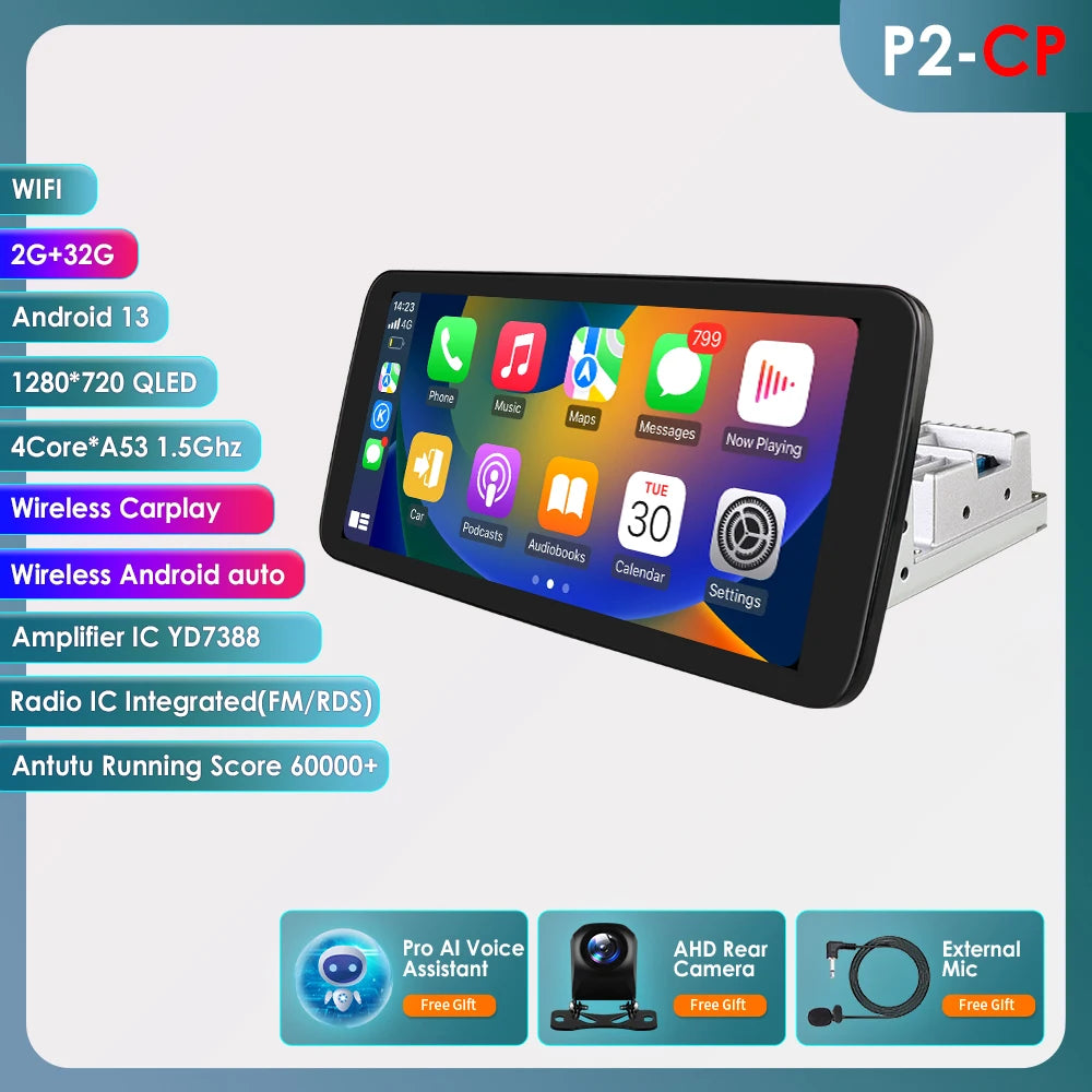 10.33'' Wireless Carplay Android 13 Universal Car Radio Support 4G WIFI DSP BT 1 Din Car Multimedia GPS Intelligent Autoradio