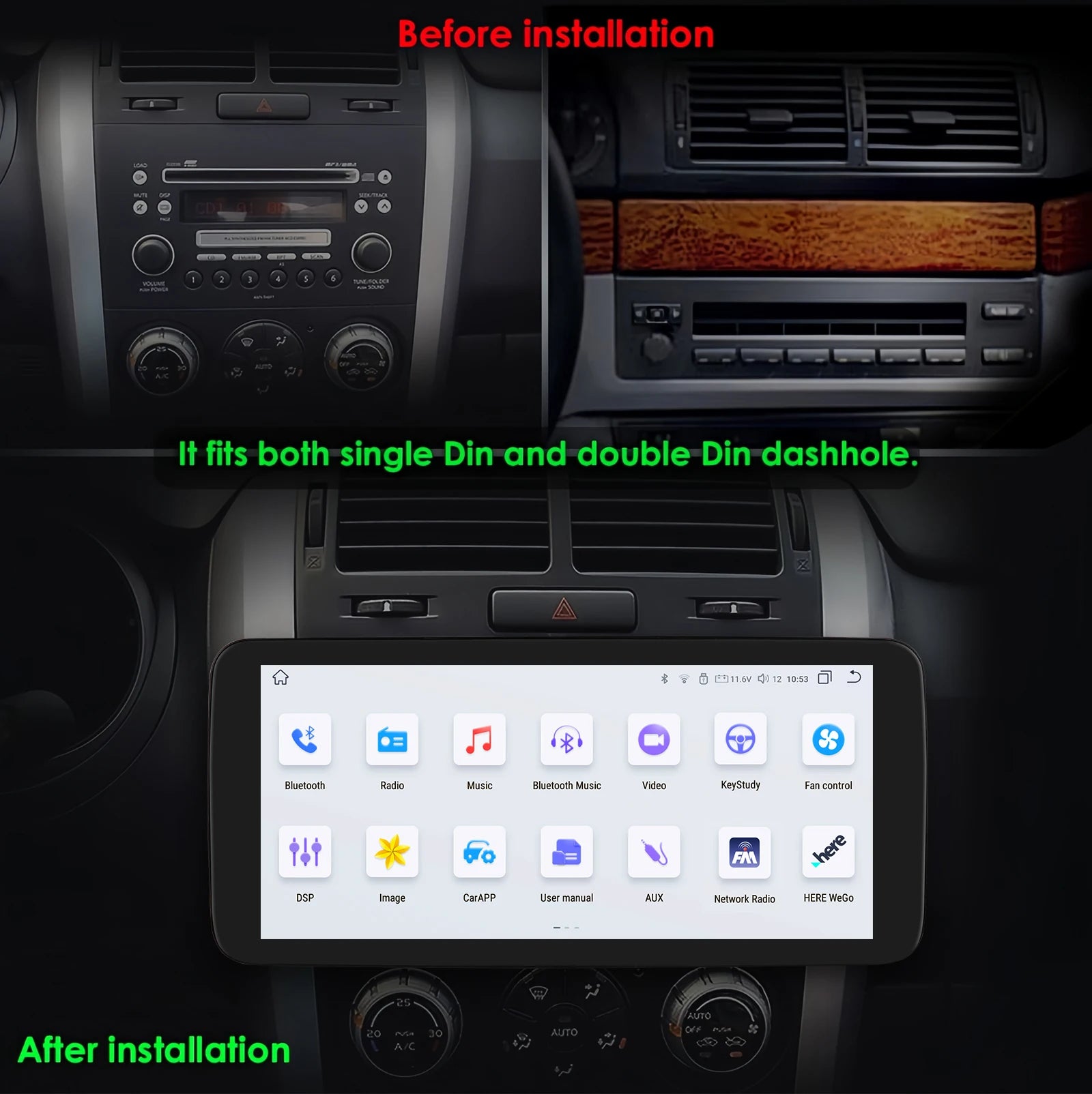 Product Size: Please kindly to compare with your original radio's size before bidding ,if size's are different which cannot install.