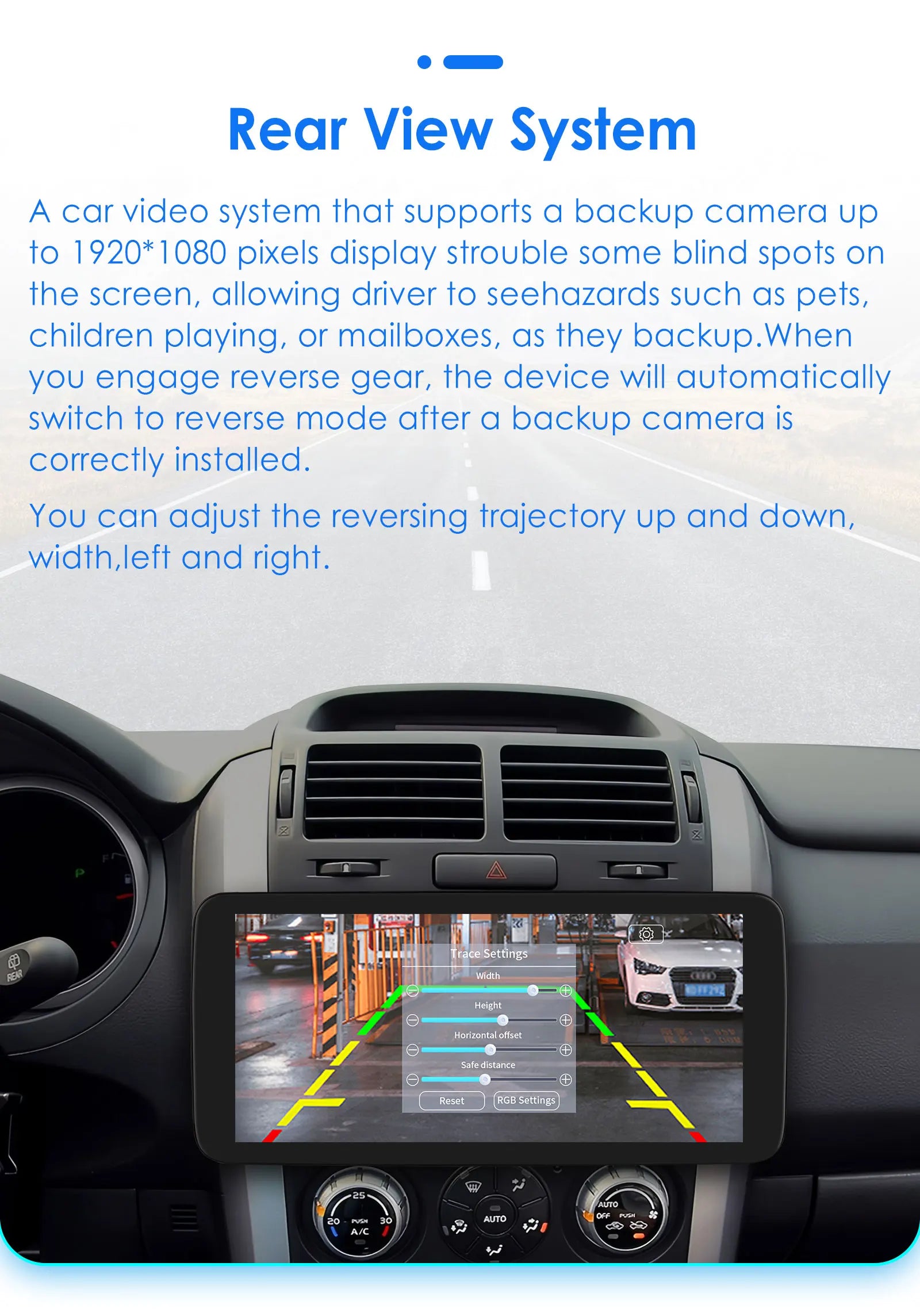 Rear View System(Rear View Camera needs to order separately):  A car video system that supports a backup camera displays troublesome blind spots on a monitor , allowing a driver to see hazard such as pets ,children playing ,or mailboxes ,as they backup.