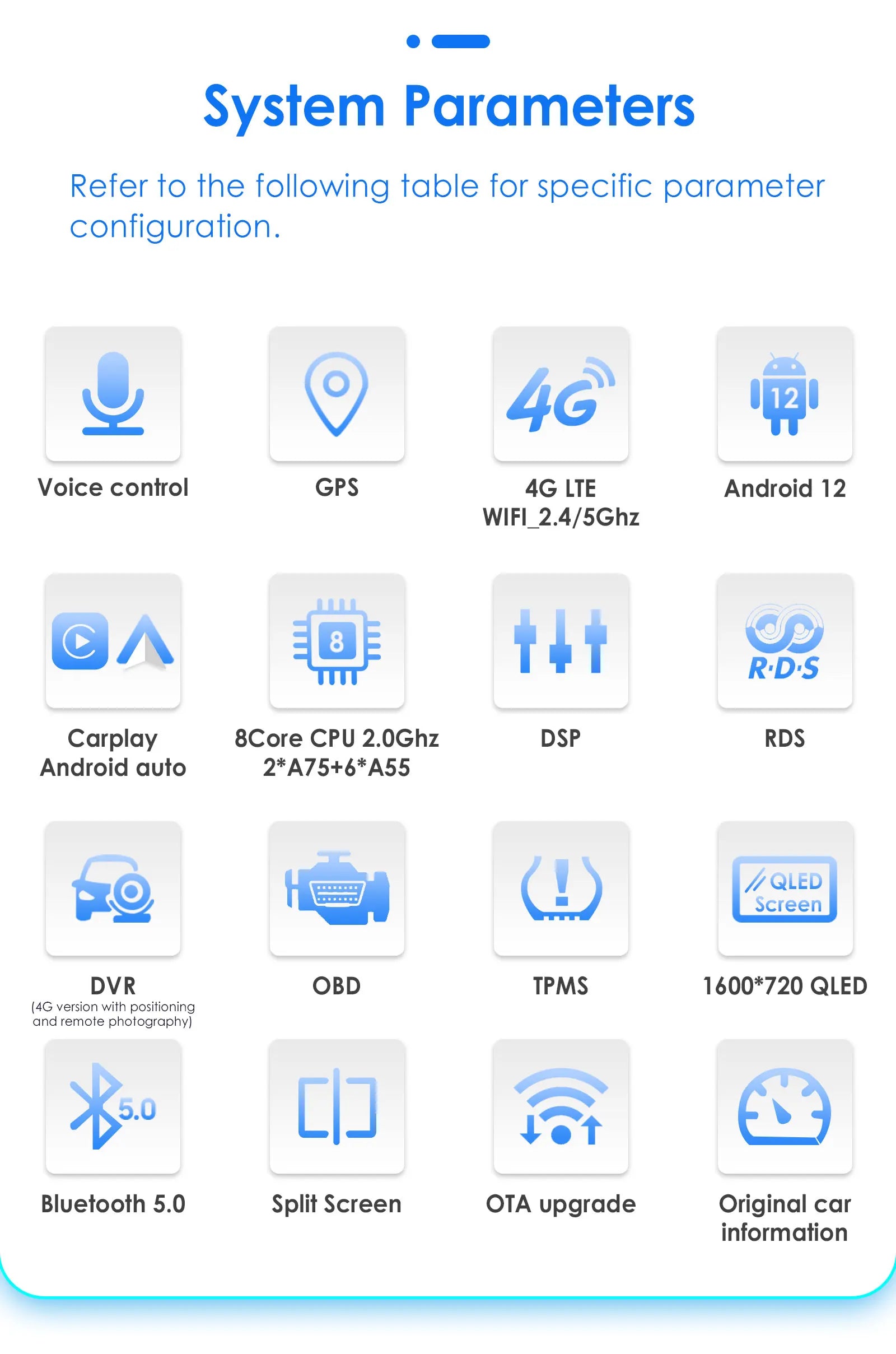 Special Features: Built-In Speaker/Microphone,wifi function,Support 4G Network,Support Can-Bus,Built-in GPS,MP3 players,Voice control,dsp,CarPlay,android auto,Reversing Input,Split Screen,Support steering wheel control