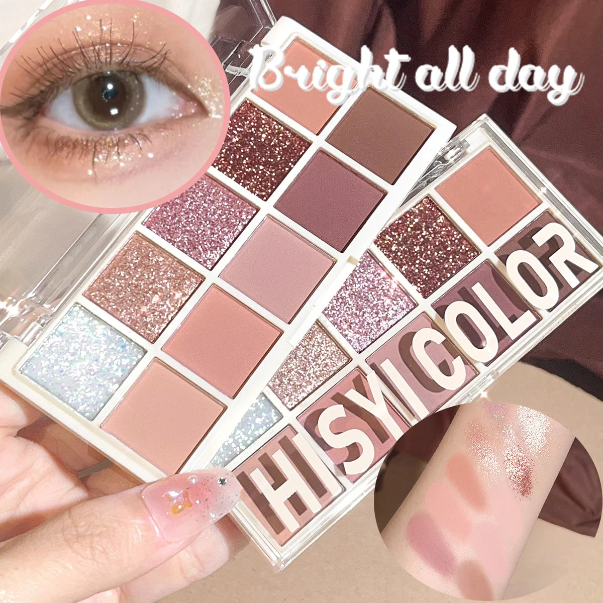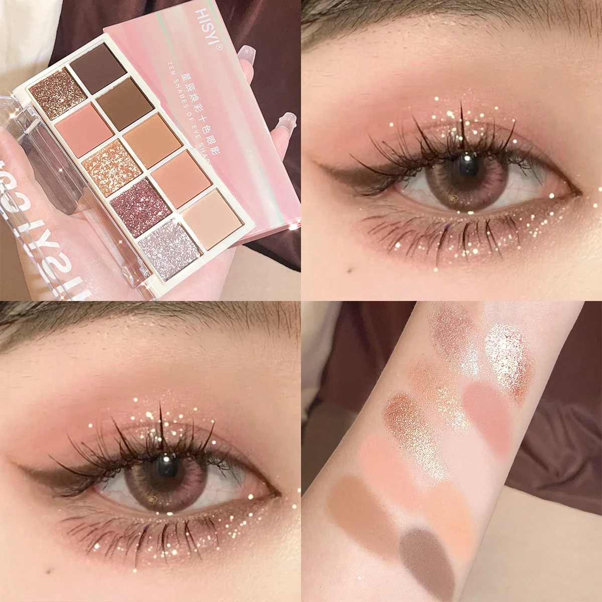 10-Color Matte & Glitter Eyeshadow Palette – High-Pigment, Long-Lasting, Waterproof & Smudge-Proof for Daily & Nude Makeup