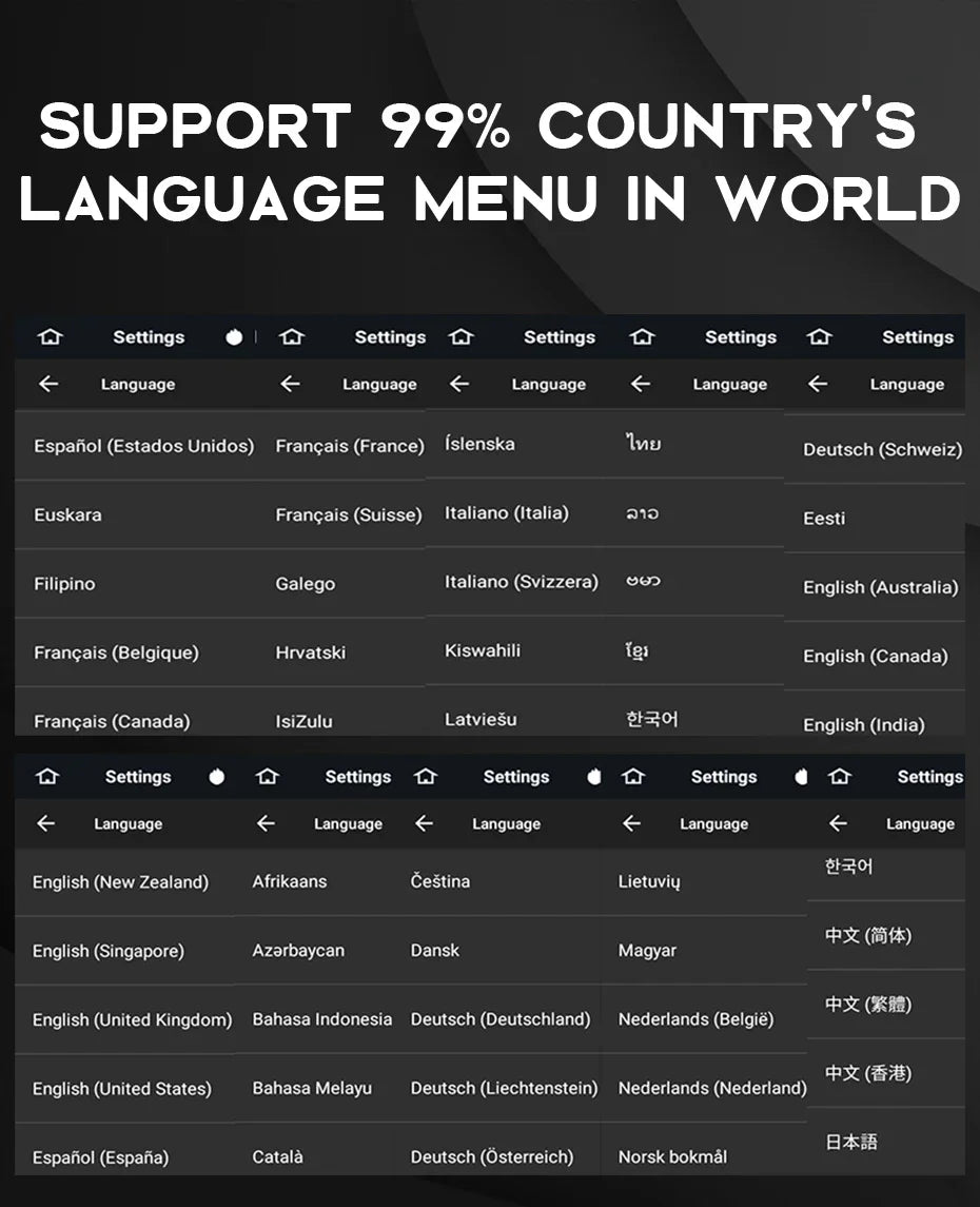 OSD Language: Chinese (Simplified),Chinese (Traditional),albanian,Arabic,Azeri,Irish,ESTONIAN,Belarusian,Bulgarian,Icelandic,Polish,PERSIAN,Boolean text (Dutch South Africa),Danish,German,Russian,French,Filipino,Finnish,Georgian,Haitian Creole,Korean,Dutch,Galicia,Catalan,czech,Croatian,Latin,Latvian,Lithuanian,Romanian,Maltese,Malay,Macedonian,Norwegian,Portuguese,Japanese,Swedish,Serbian,Slovak,Slovenian,Swahili,THAI,Turkish,Welsh,Ukrainian,Hebrew,Greek,Spain's Basque,Spanish,hungarian,Armenian,Italian,Yiddish,hindi,Urdu India,indonesia,English,Vietnamese