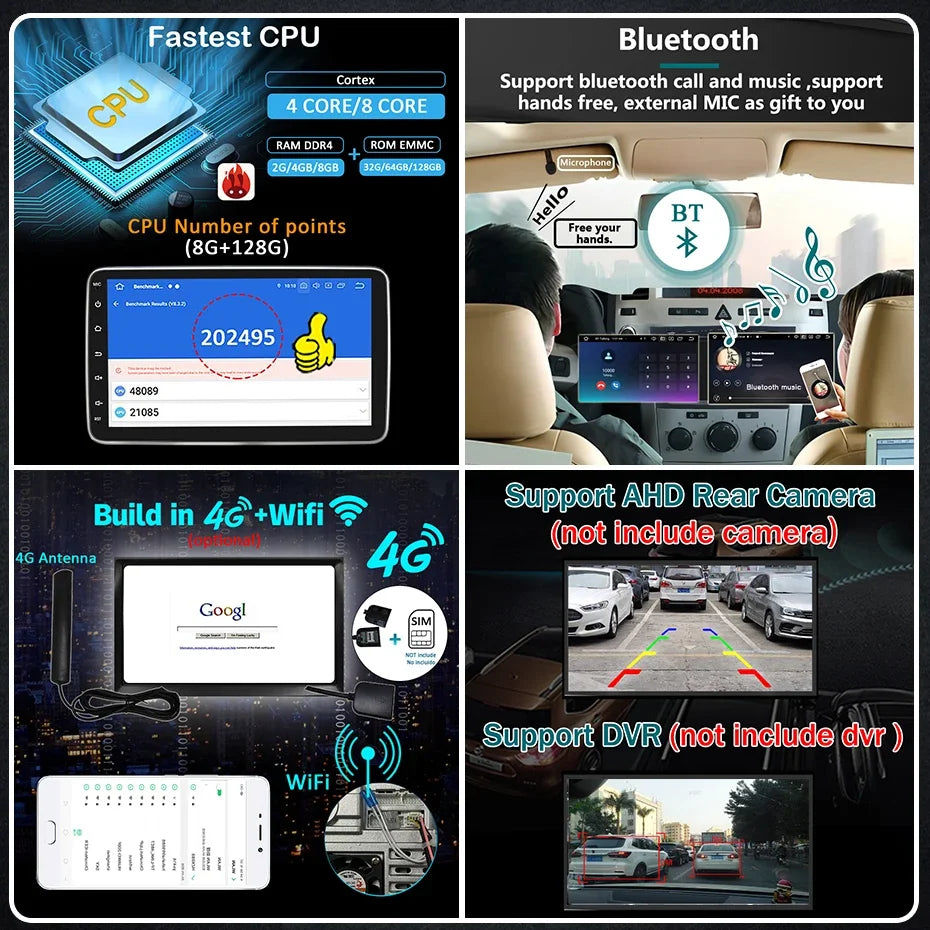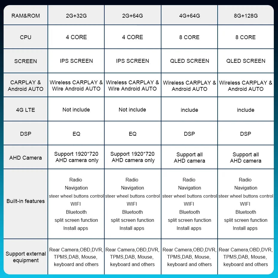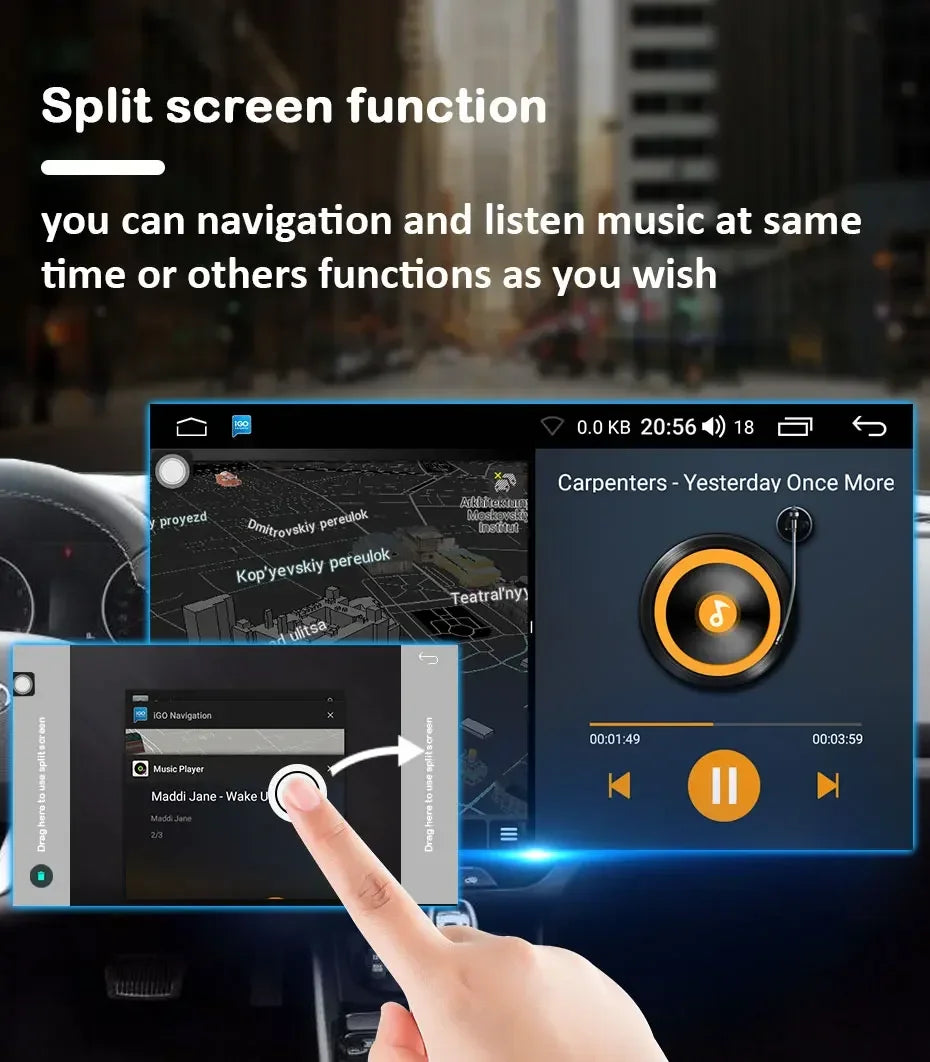 Special Features: wifi function,Support steering wheel control,Support 3G Network,Support 4G Network,Built-in GPS,Charger,Mobile Phone,MP3 players,dsp,CarPlay,android auto,Reversing Input,Split Screen