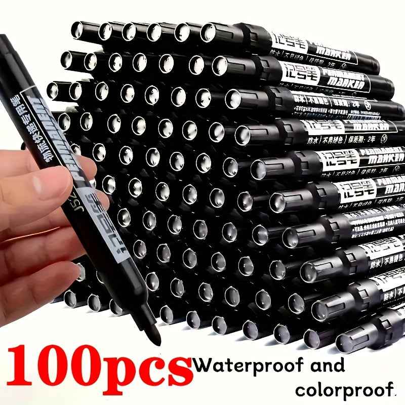 100-Pack Pennarelli Permanent Grandi, Inchiostro Nero Impermeabile, Asciugatura Rapida per Arte e Ufficio, Penne ad Alta Capacità con Inchiostro Resistente all'Acqua