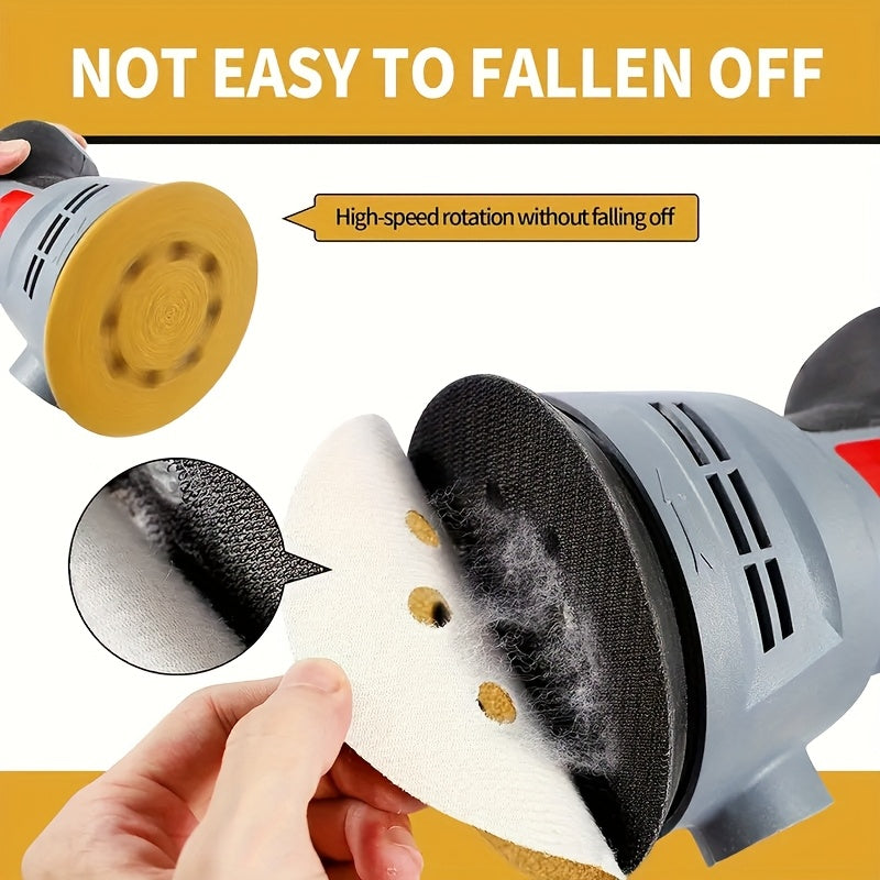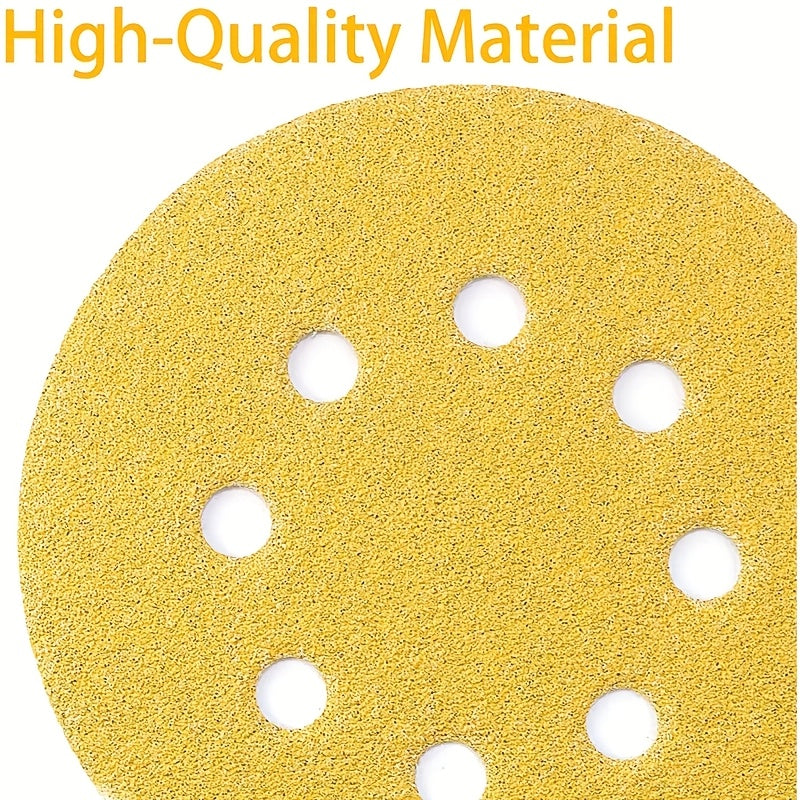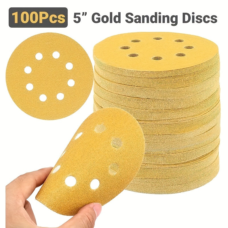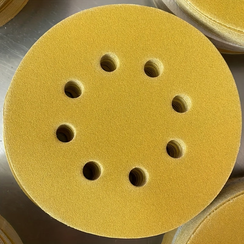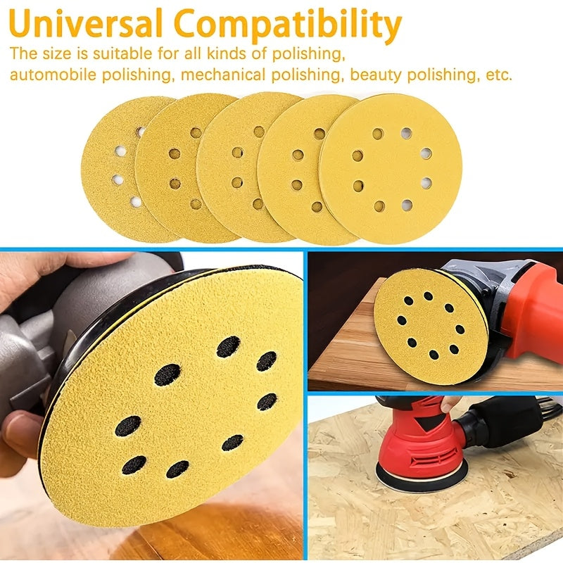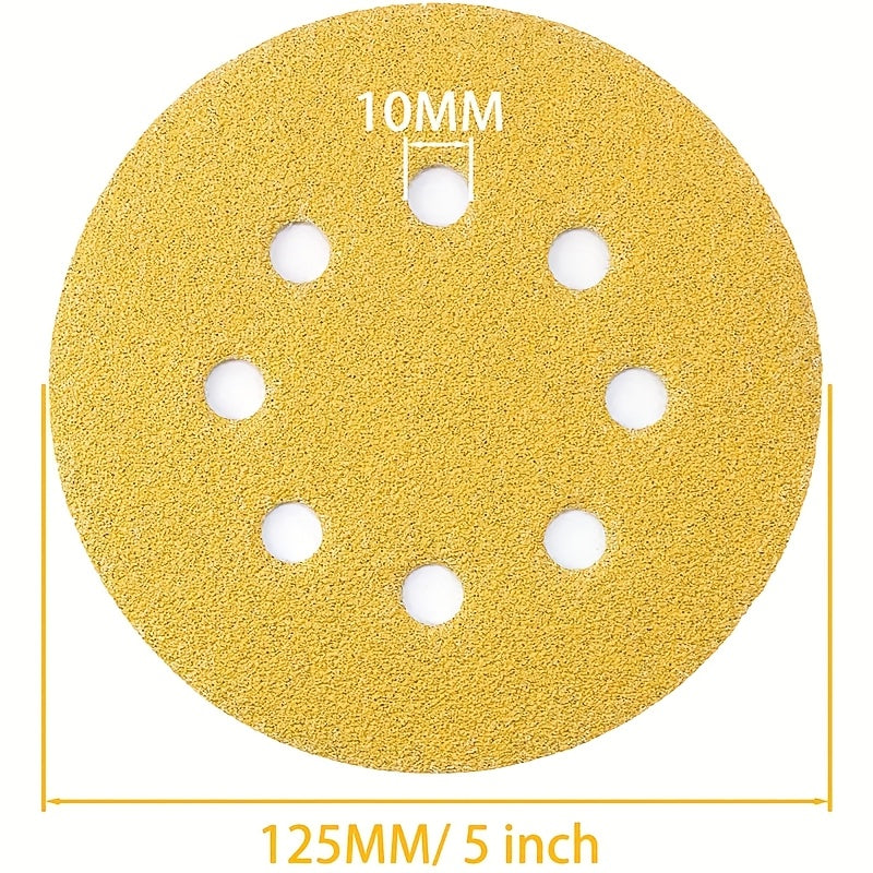 100 pezzi di dischi per levigatura gialli da 5 pollici con 8 fori - Ossidiana di alluminio, utilizzo umido/secco per lucidatura del legno e del metallo, compatibile con levigatrice elettrica a orbita casuale, strumenti per la lavorazione del legno, carta