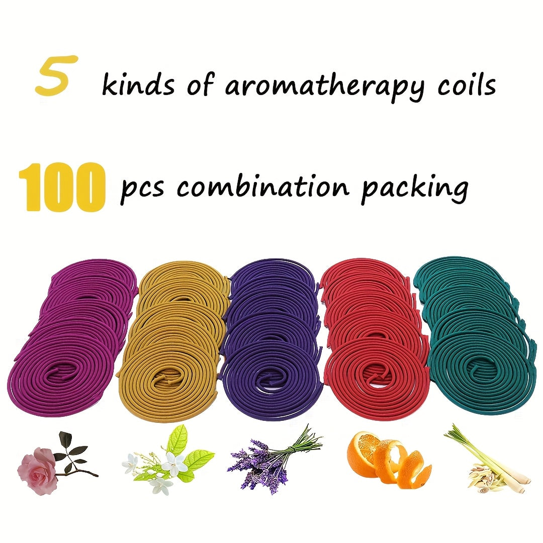 100 pezzi di spirali miste, limone, rosa, giacinto, lavanda, arancia 20 pezzi di ogni profumo, avvolgimento, tempo di bruciatura dell'incenso 3-4 ore adatto per la purificazione dell'aria, yoga, meditazione, fitness, purificazione domestica e rilassamento