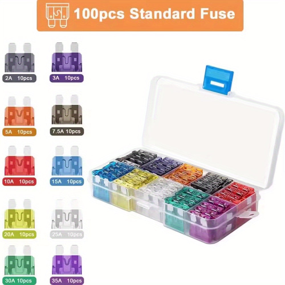 100 pz, kit di fusibili per auto, sostituzione per auto/RV/camion/motori 2A-35A, adatto a tutti i modelli con inserti per fusibili a lama