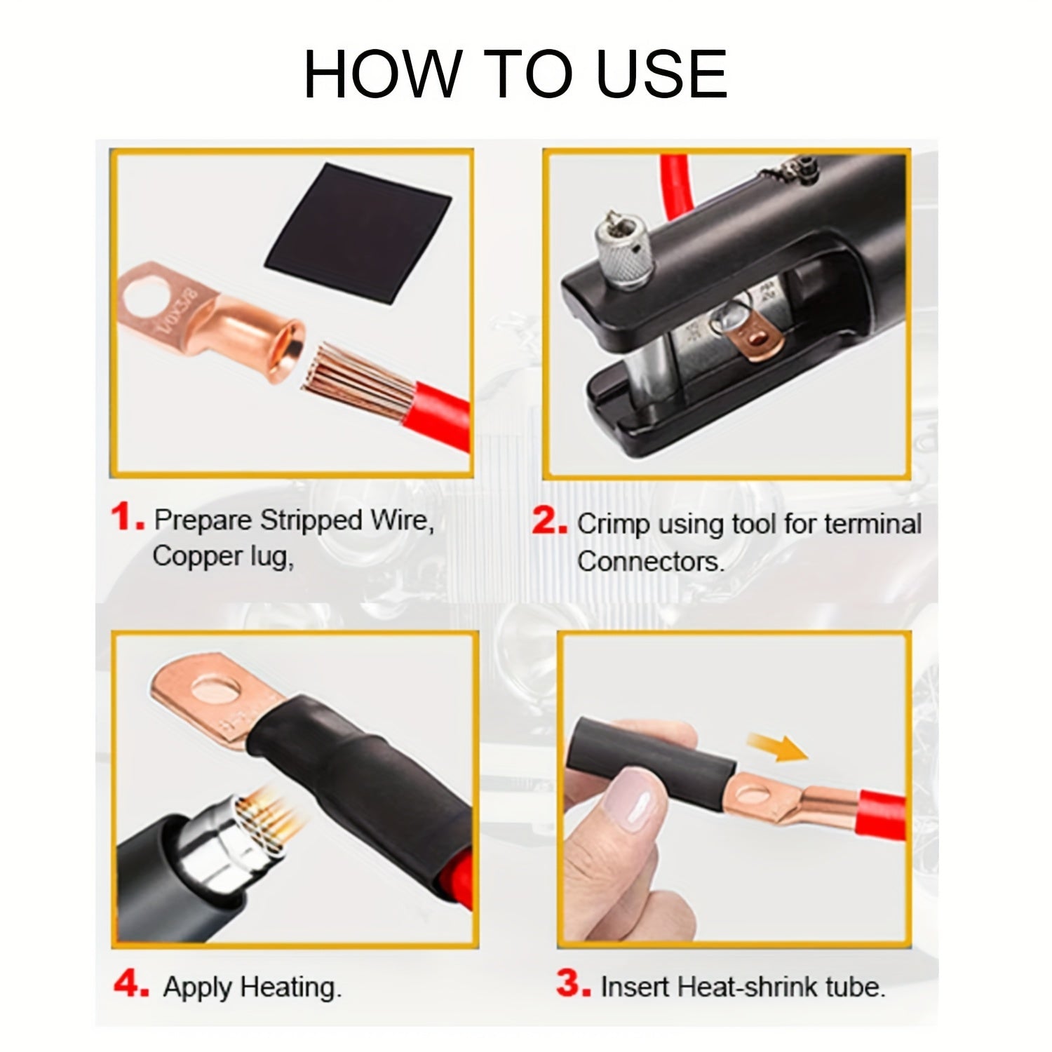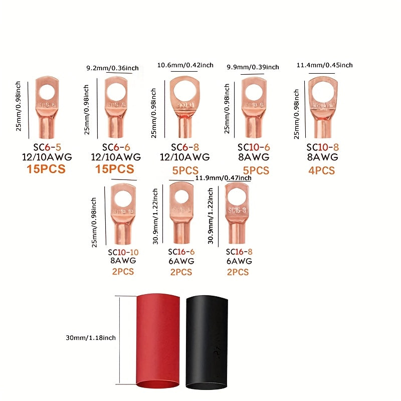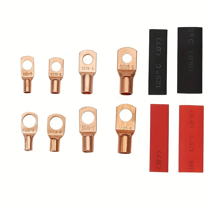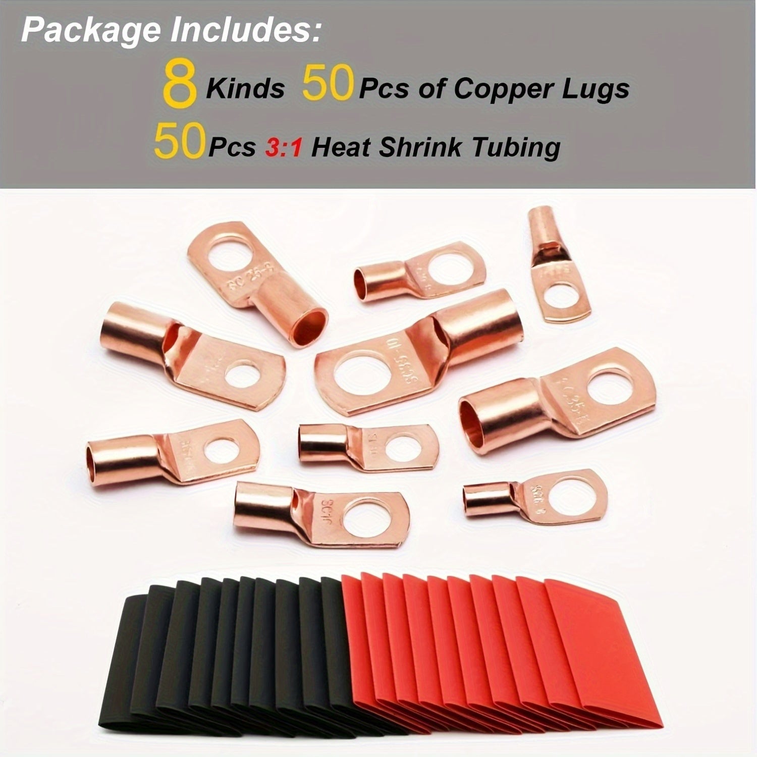 100 pz, morsetti per filo di rame AWG 6 8 10 12 con set di tubi termoindurenti, 50 pz, morsetti per cavi di batteria, estremità di cavi di batteria, terminali a anello, connettori con 50 pz, tubi termoindurenti