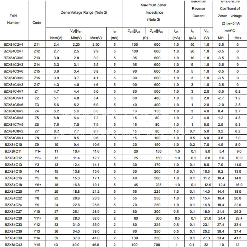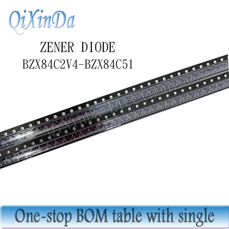 100PCS SMD Diodo Zener BZX84C15 BZX84C16 BZX84C18 BZX84C20 BZX84C24 BZX84C27 BZX84C33 BZX84C39 BZX84C47 BZX84C51 0.3W SOT-23