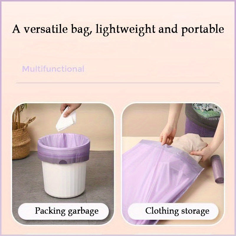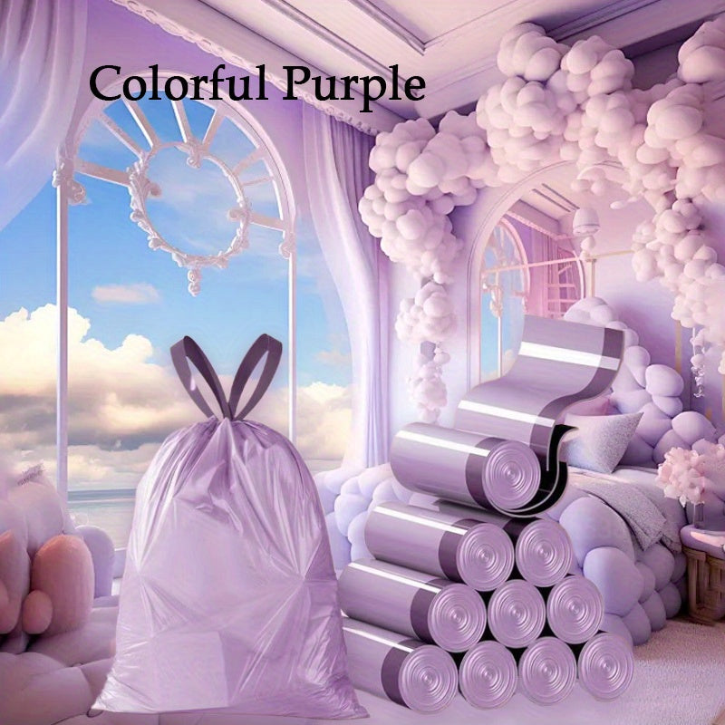 100pz Sacchetti Portatili per Immondizia con Coulisse per Uso Domestico, Sacchetto della Spazzatura Viola da Festa