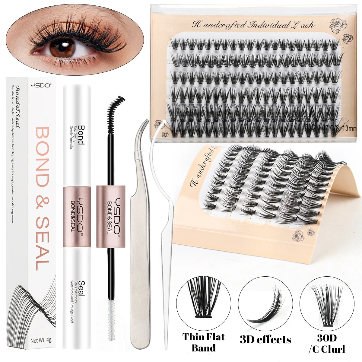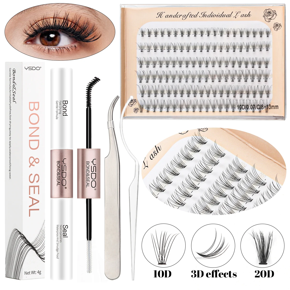 10D/20D/30D Fake Eyelashes Extensions Kit Lash Bond and Seal False Eyelashes Makeup Set DIY Long Lashes Clusters Make up Tool