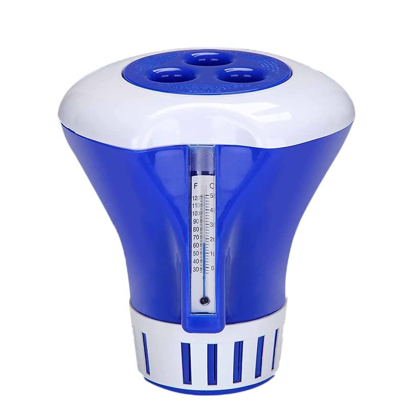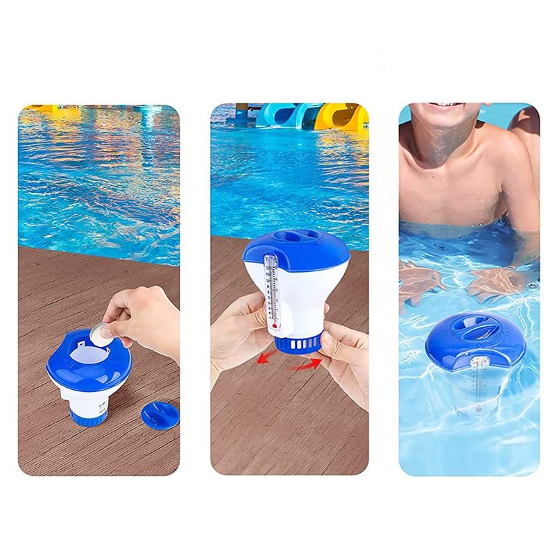 10Kg Cloro 4 azioni a Pastiglie + DOSATORE GALLEGGIANTE per acque piscina, 50 Pastiglie da 200 gr a lenta dissoluzione per disinfezione dell’acqua, Clorante, Alghicida, Stabilizzante del pH