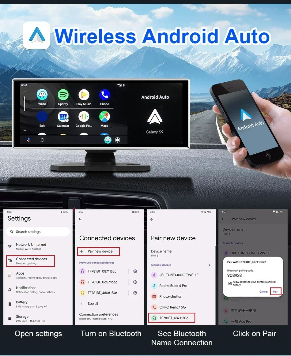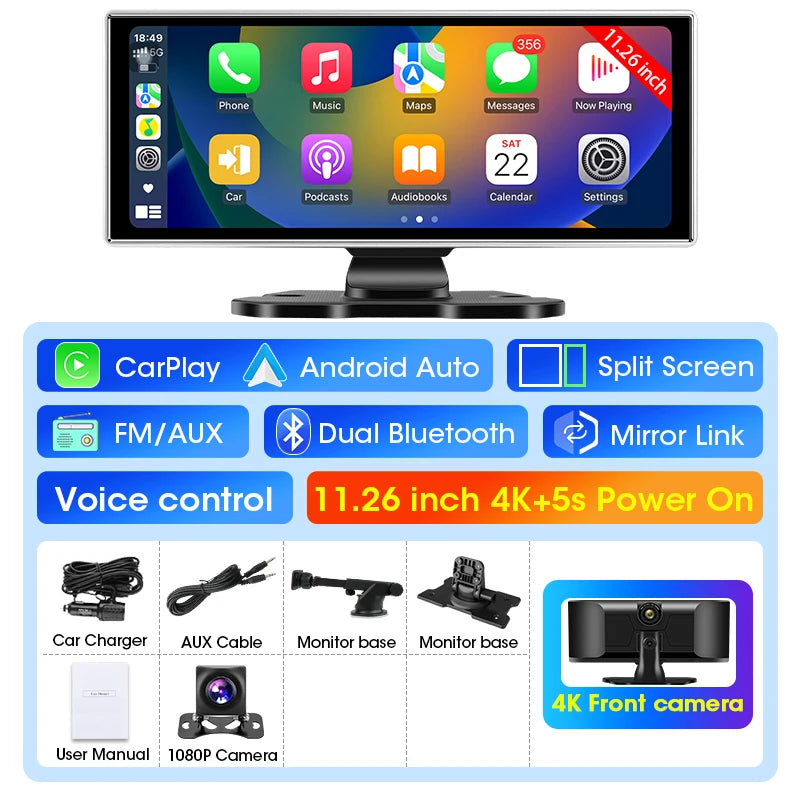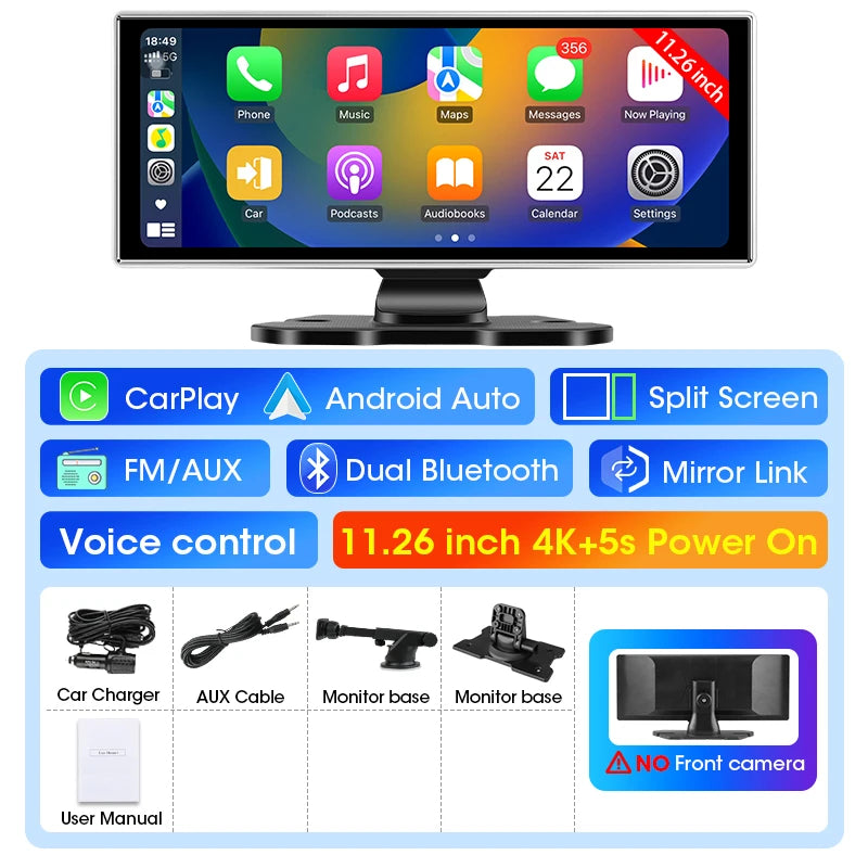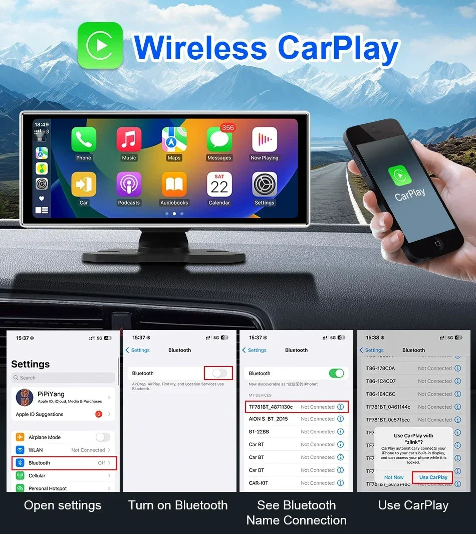 Please Note:1.T313D does not have a front facing camera 2.Carplay's Bluetooth does not connect directly to the Bluetooth of the car radio. We support dual Bluetooth modes, and once the phone is connected to our carplay, it can also connect to the Bluetooth of the car radio