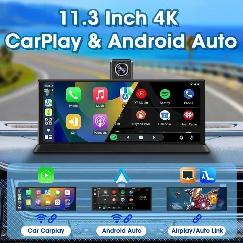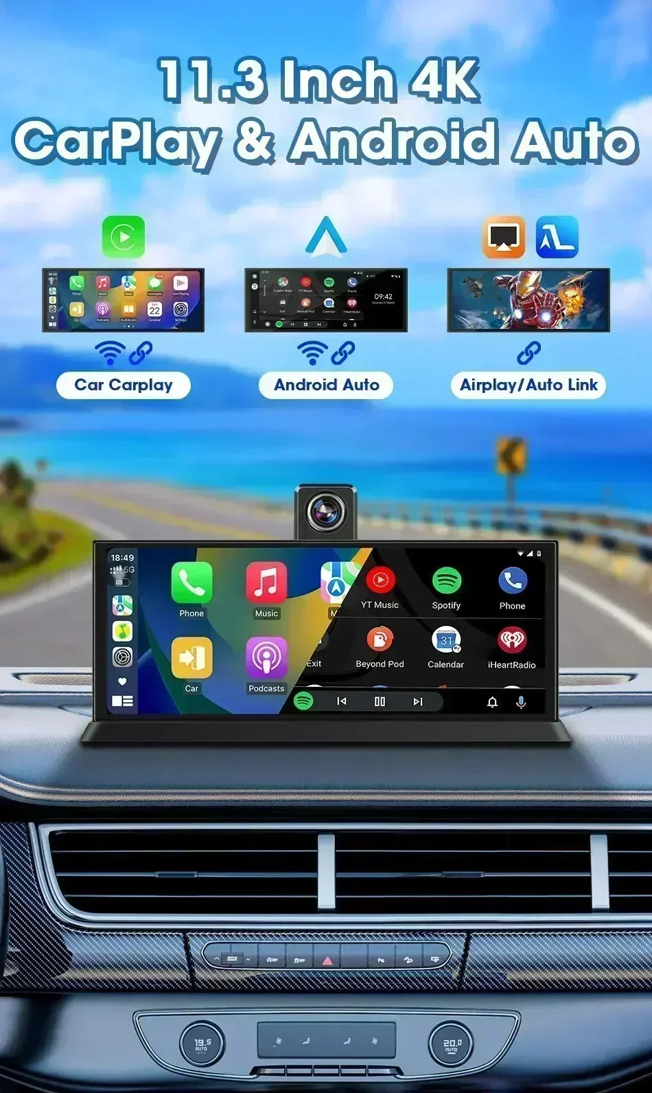 The 11.26 inch car play screen fit for all different cars, campers, RVs, trucks, vans from 12V-32V.