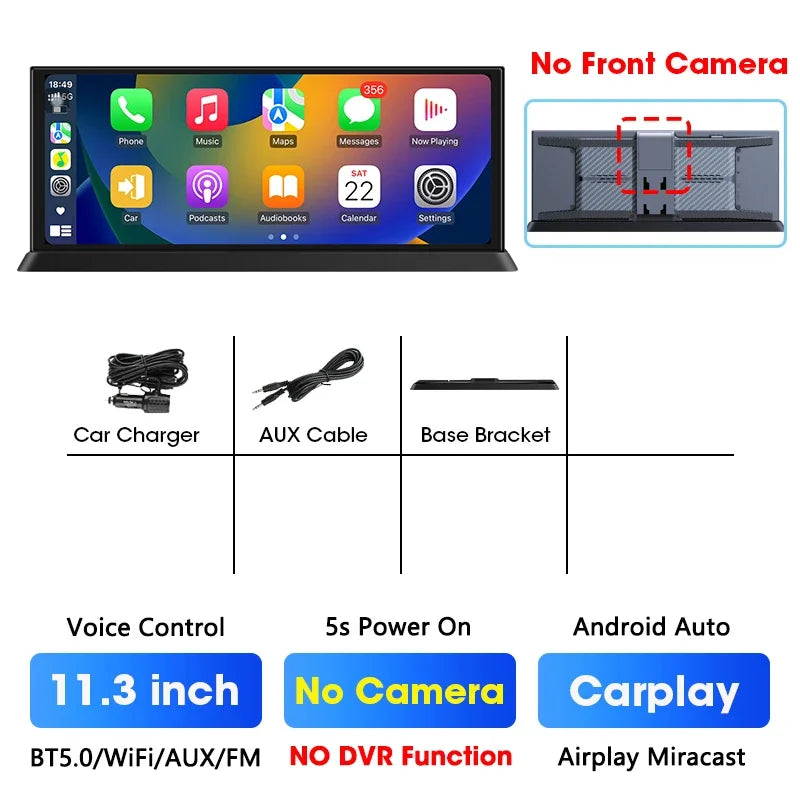 【Siri,Google Voice Assistant, Live GPS Navigation】portable car play with 11.26-inch HD touch carplay screen, delivering precise real-time location and GPS navigation without a second's delay. The car play screen for IOS supports Siri, Google Assistant to free your hands.