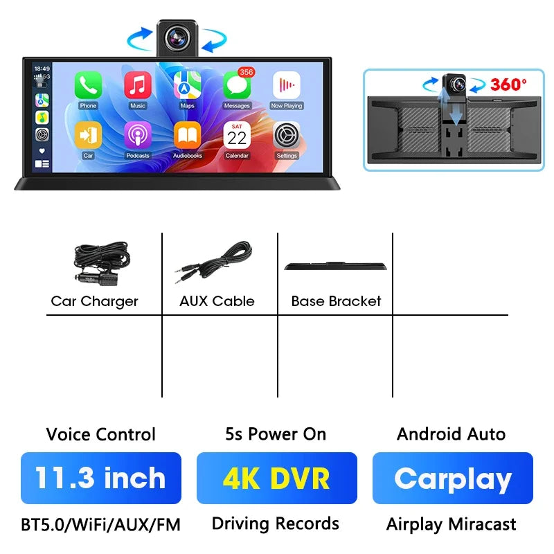 360 ° rotatable front camera, 4K DVR function, can be placed anywhere on the center console, making travel so simple.
