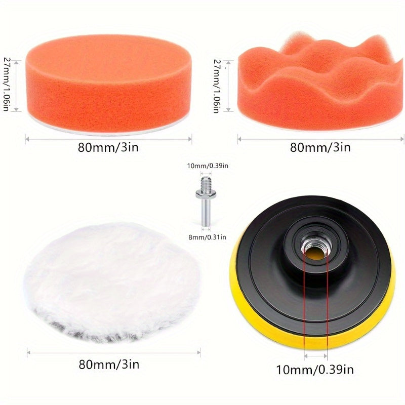 11 pezzi/24 pezzi/38 pezzi 3.0 pollici pad di lucidatura, set di pad di lucidatura per trapano a schiuma per auto, set di lucidatore a spugna, set di riparazione per fari con pad di lana
