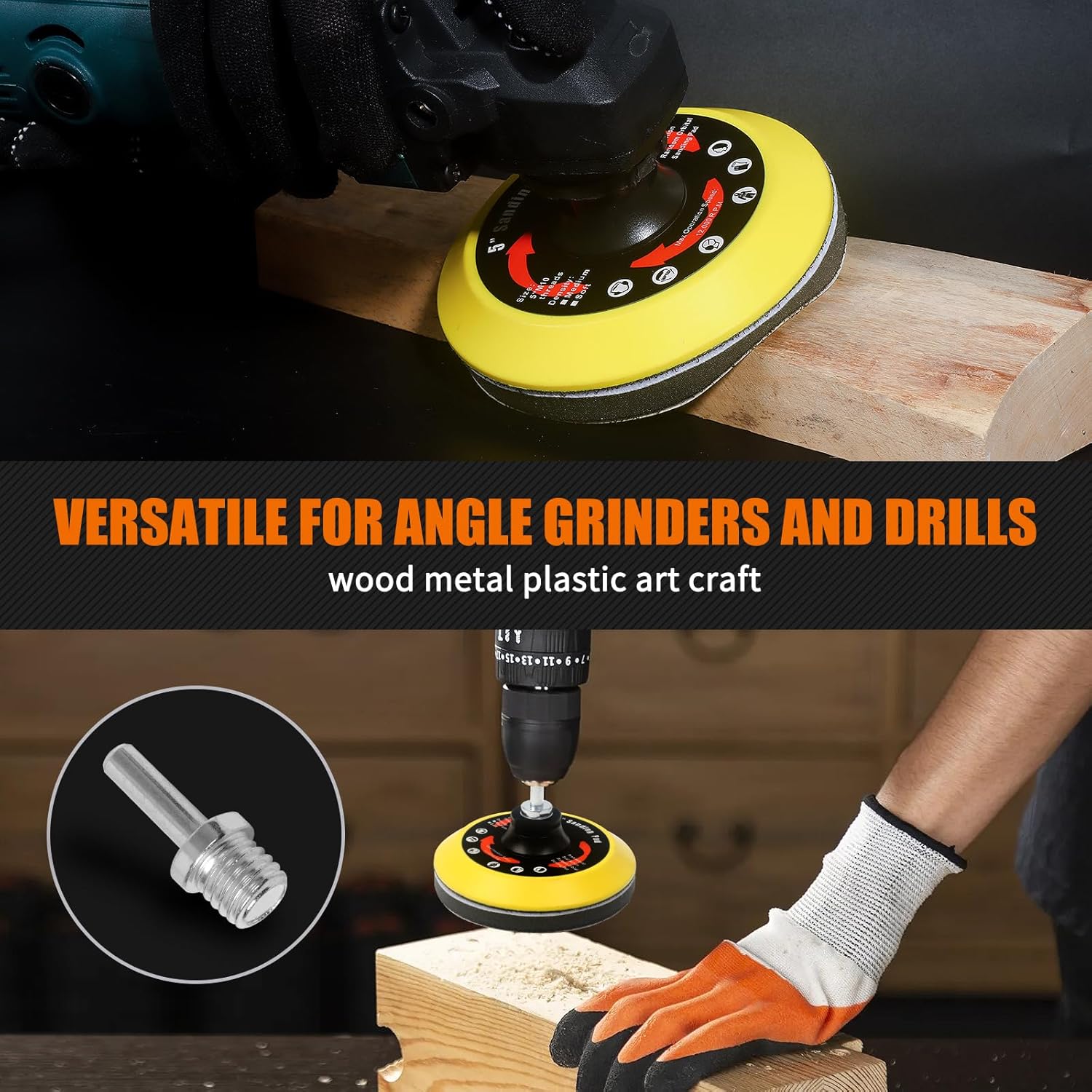 114 pezzi dischi abrasivi con supporto in schiuma da 5 pollici per smerigliatrice angolare - Materiale polimerico resistente, grane 40-1000, ideali per la levigatura e la lucidatura di legno e metallo, accessori per la lavorazione dei metalli | Dischi abr