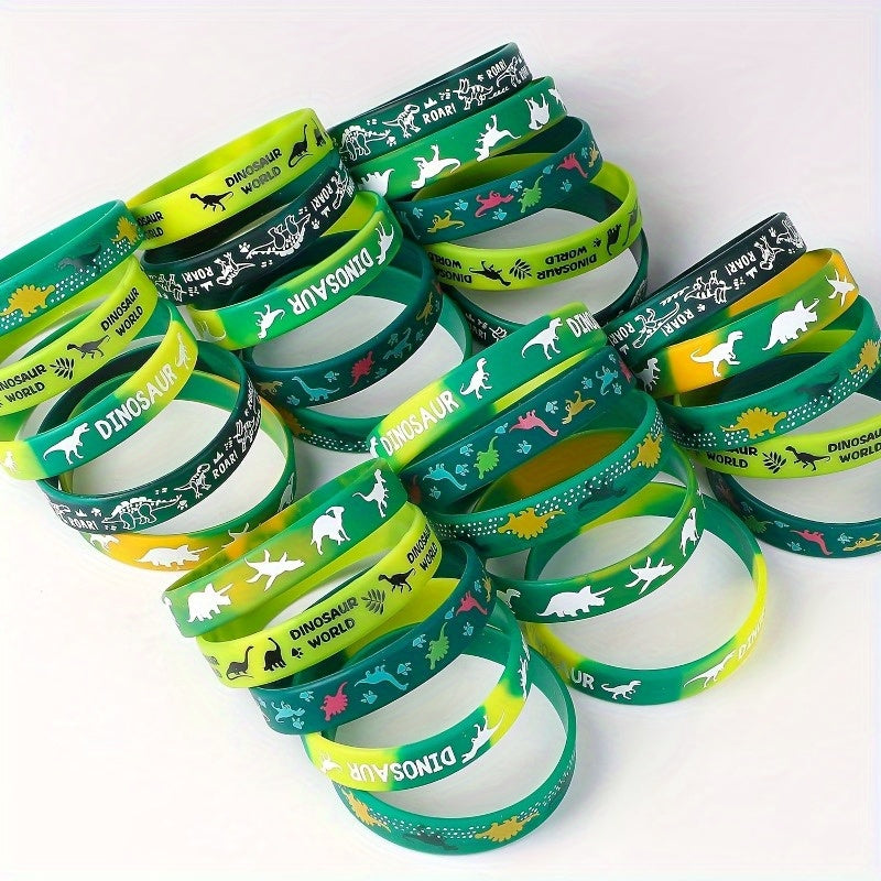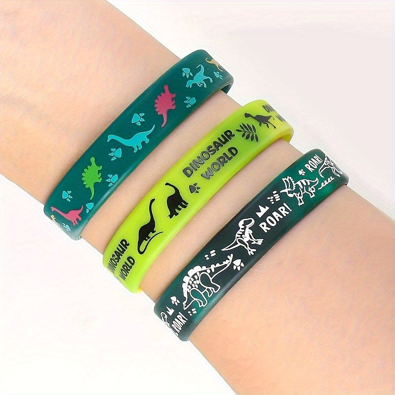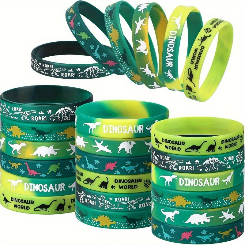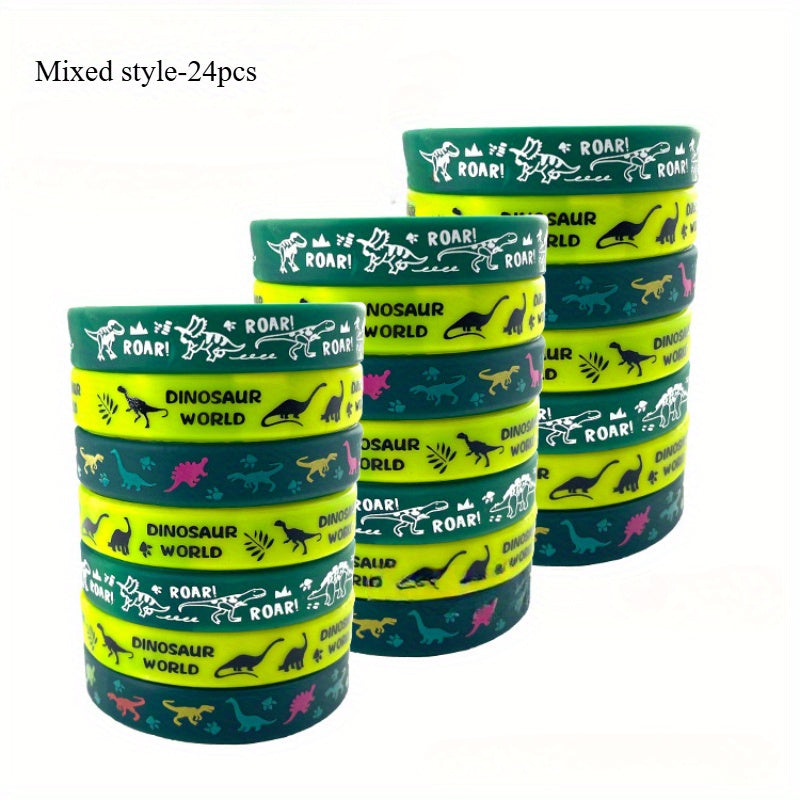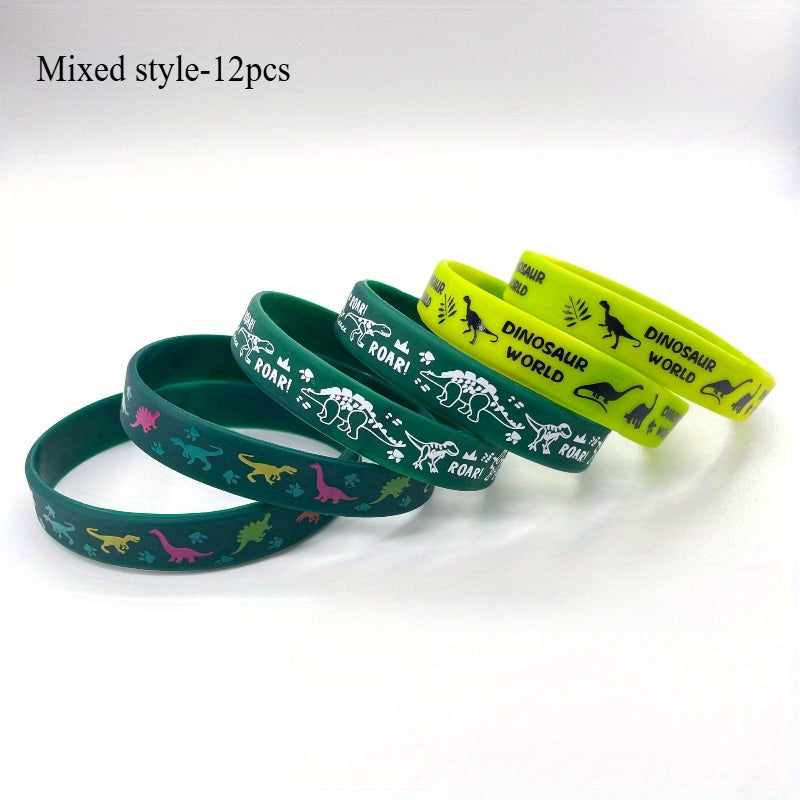 12/24 pezzi di braccialetti da polso con tema di dinosauri e animali, carini, in silicone, a tema misto, adatti come regali per feste di compleanno.