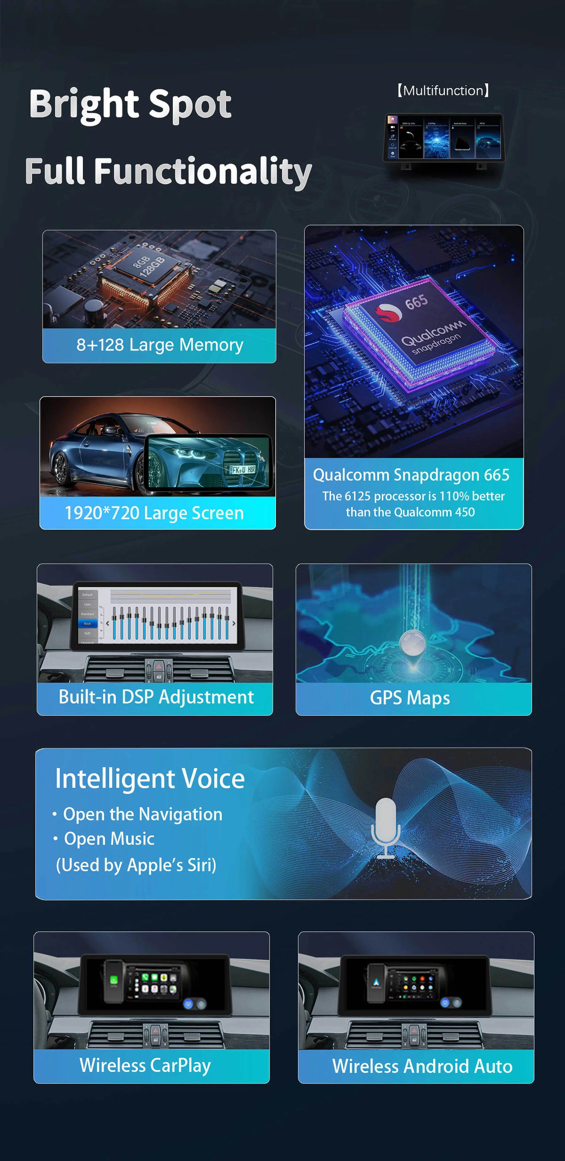 SPECIFICATIONSBMW Model: X4Brand Name: NoEnName_NullBuilt-in DVD Player: NoBuilt-in Screen: YesCertification: CEDigital Media Format: Mp3,MP4,WMA,JPEGDin: One DinDisplay Size: 12.3‘’For Vehicle Brands/Model:... Per saperne di più