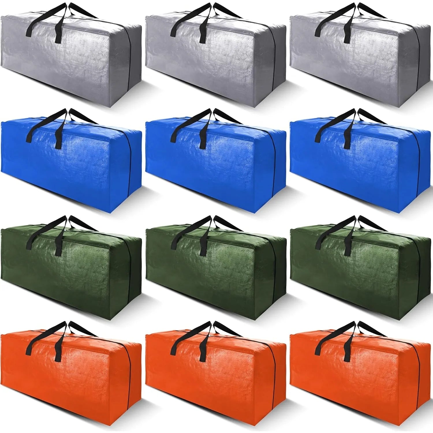 12 Pack Heavy Duty Moving Bags with Backpack Straps - Strong Handles & Zippers, Storage Totes (X-Large-Set of 12, Multicolored)