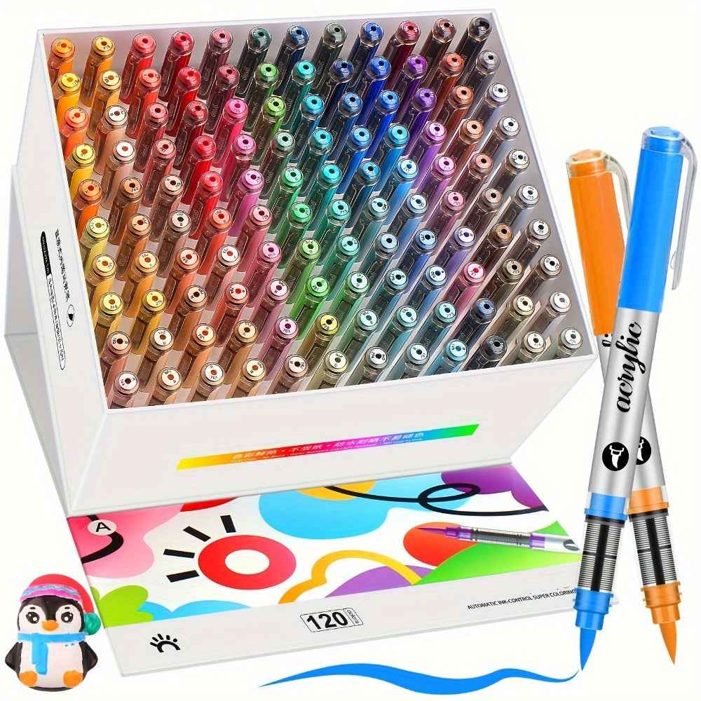 120 Colori Pennarelli Acrilici per Disegno Senza Odore, Pennarelli per Graffiti, Forniture per Disegno, Set di Pennarelli di Alta Qualità, Punta Morbida, Adatto per Pittura su Roccia, Legno, Plastica, Tessuto e Artigianato Fai-da-te, Adatto come Regalo