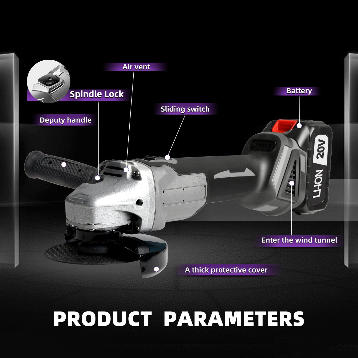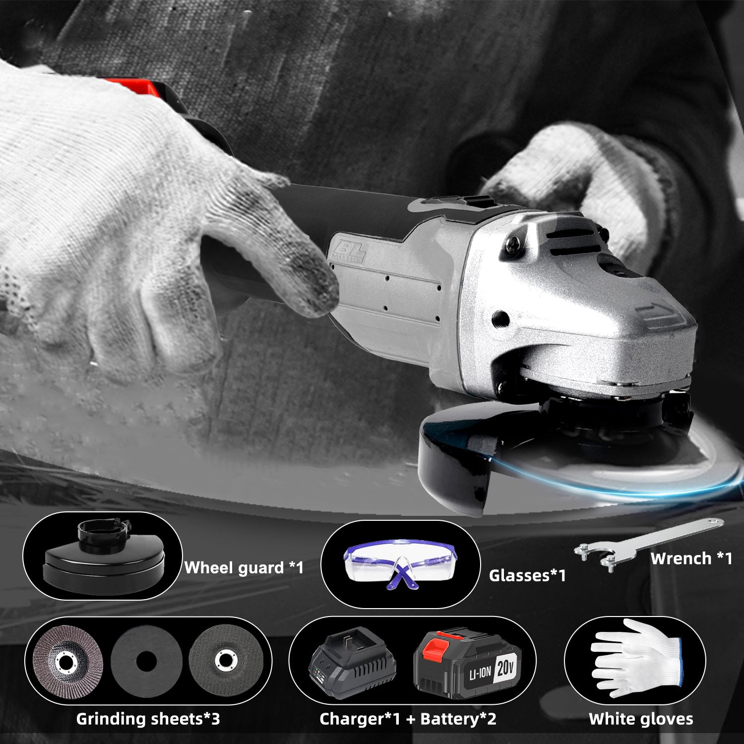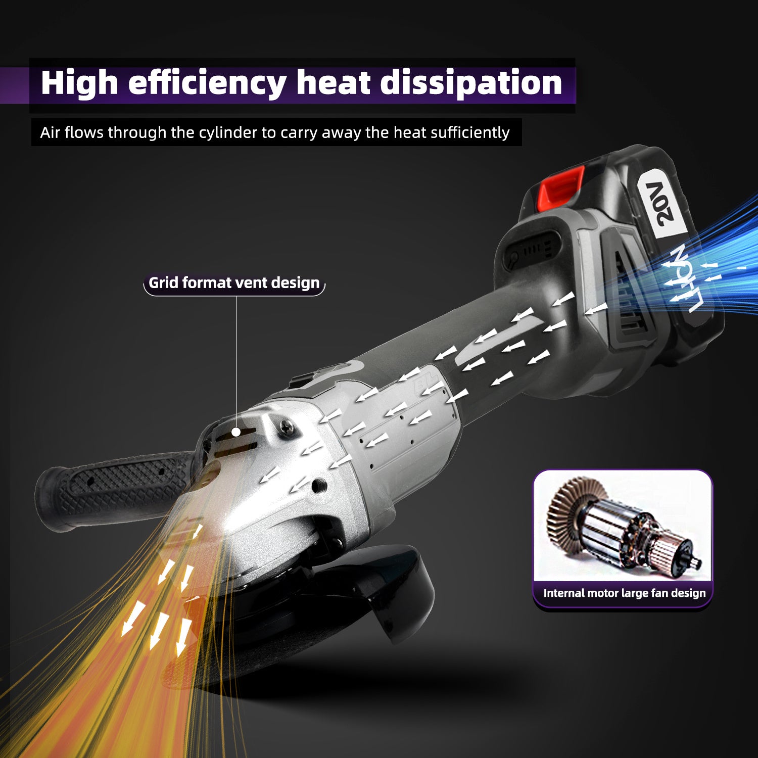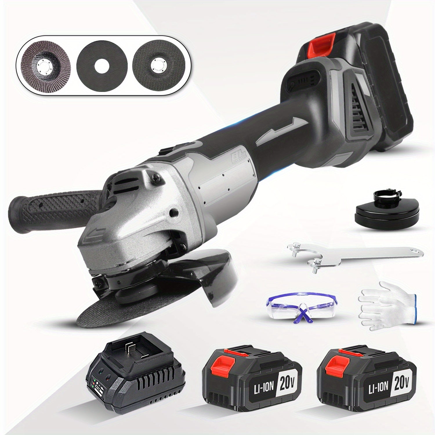 125mm Macchina da polvere senza fili, alimentata a batteria al litio, perfetta per progetti domestici come tagliare mattoni, rifinire l'acciaio, lucidare le pareti, pulire i saldature e rimuovere la ruggine. Design leggero per un facile maneggevolezza in