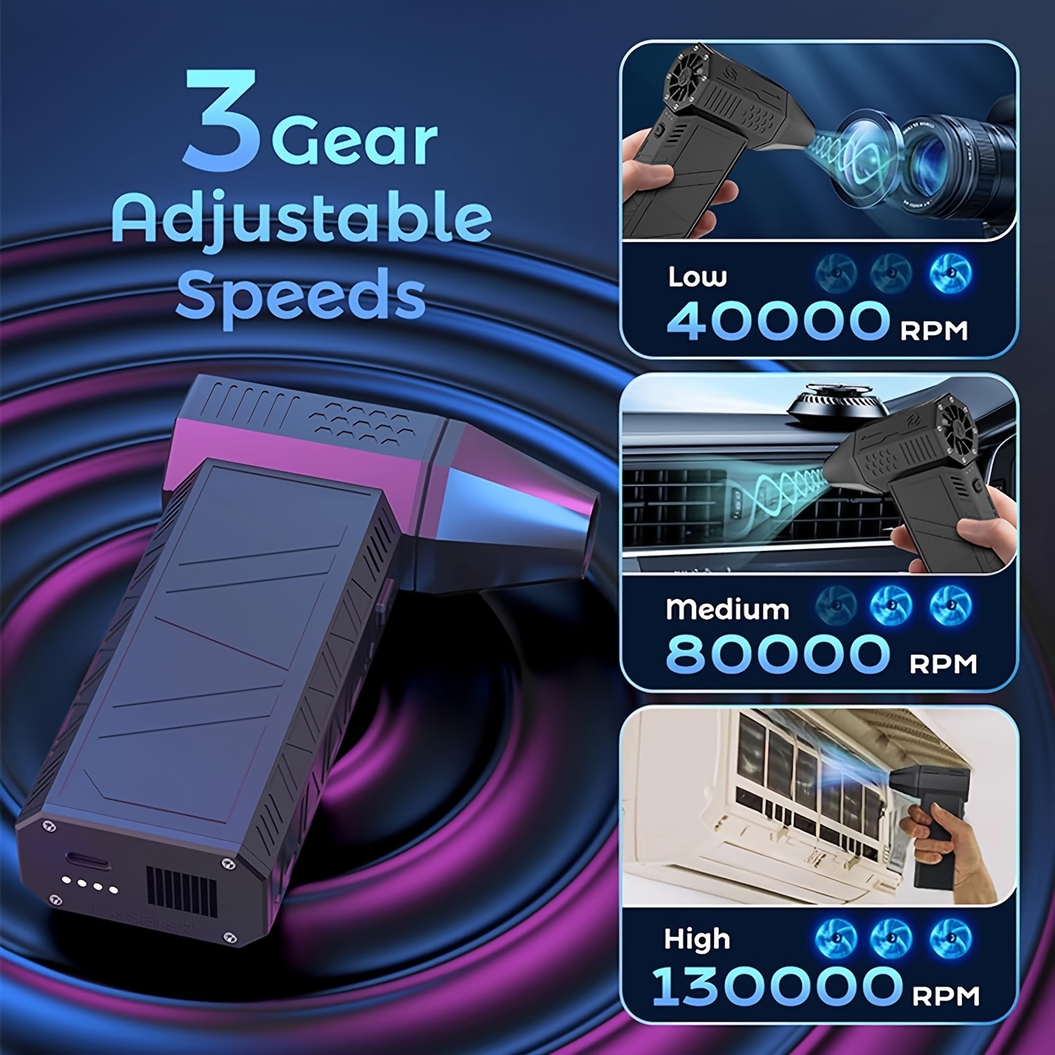 130000 RPM High-Speed Jet Hair Dryer - Turbo-Charged, Portable, Wireless, Rechargeable, and Compact Design - Perfect for Car, Computer, Keyboard, and Lens Drying with Convenient Type-C Rechargeable Feature