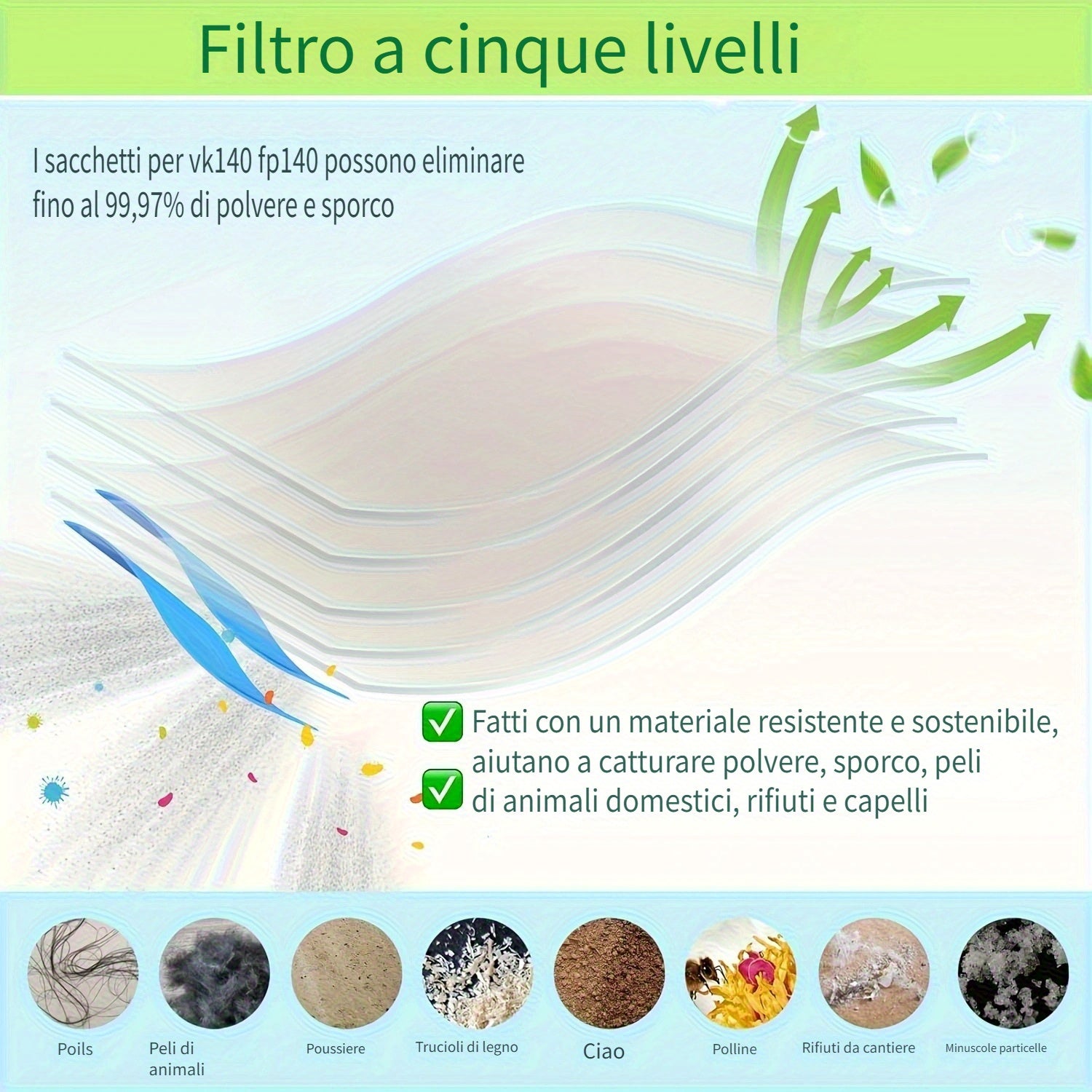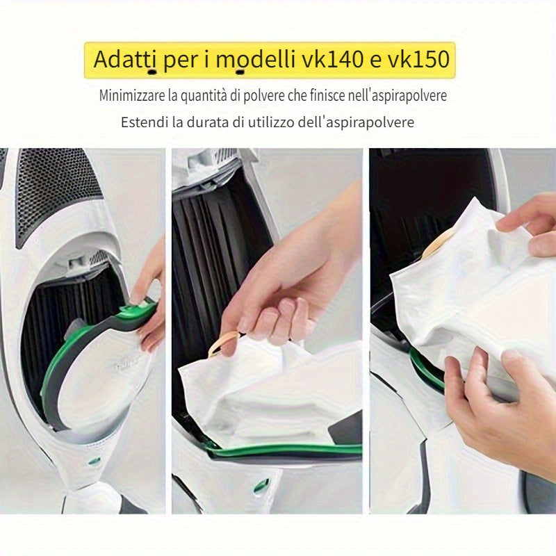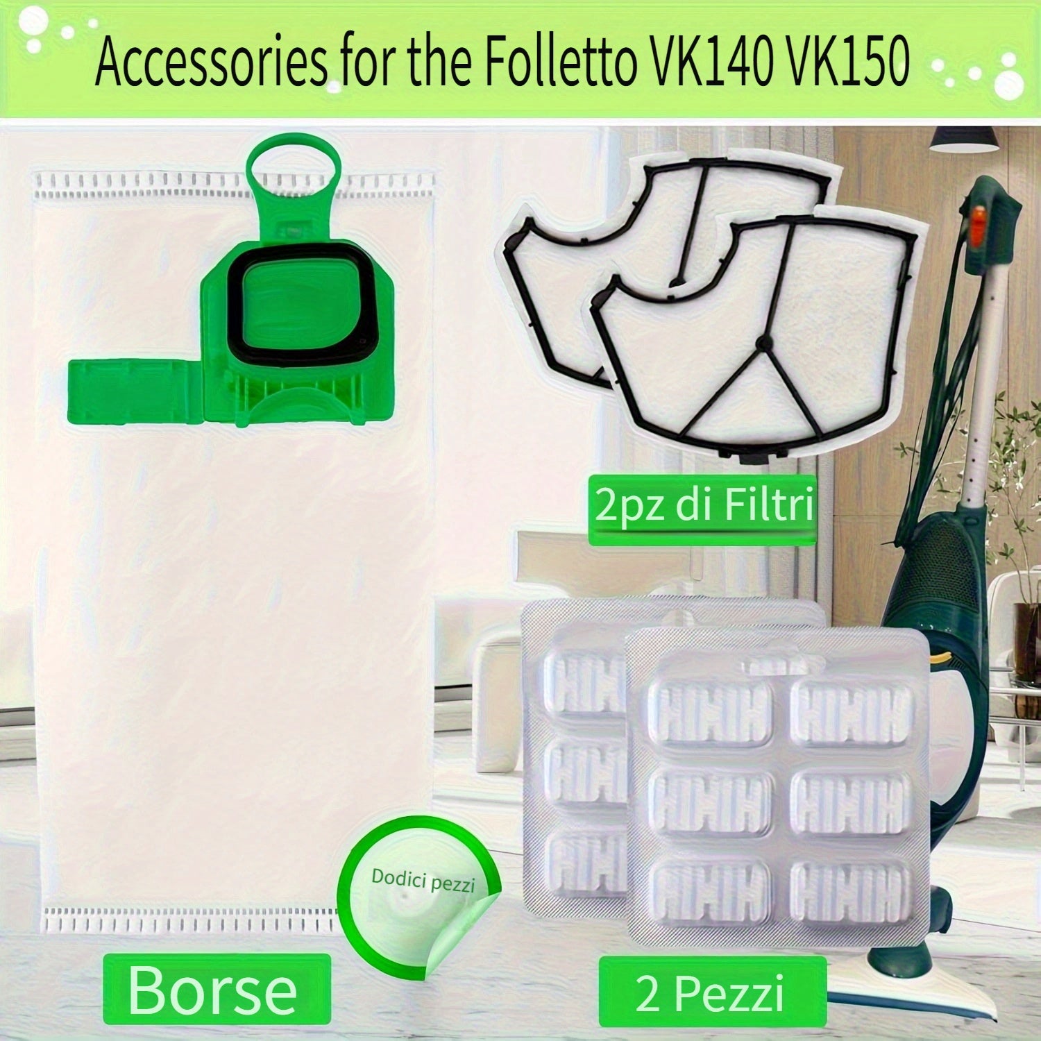 14 Pezzi, Sacchetti per Folletto VK140 VK150 FP140 (10 Sacchetti + 2 Filtri Motore Griglia + 2 Profumo)