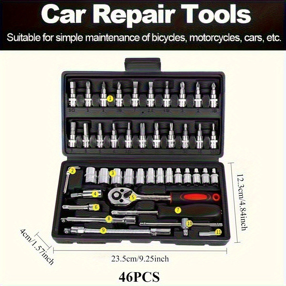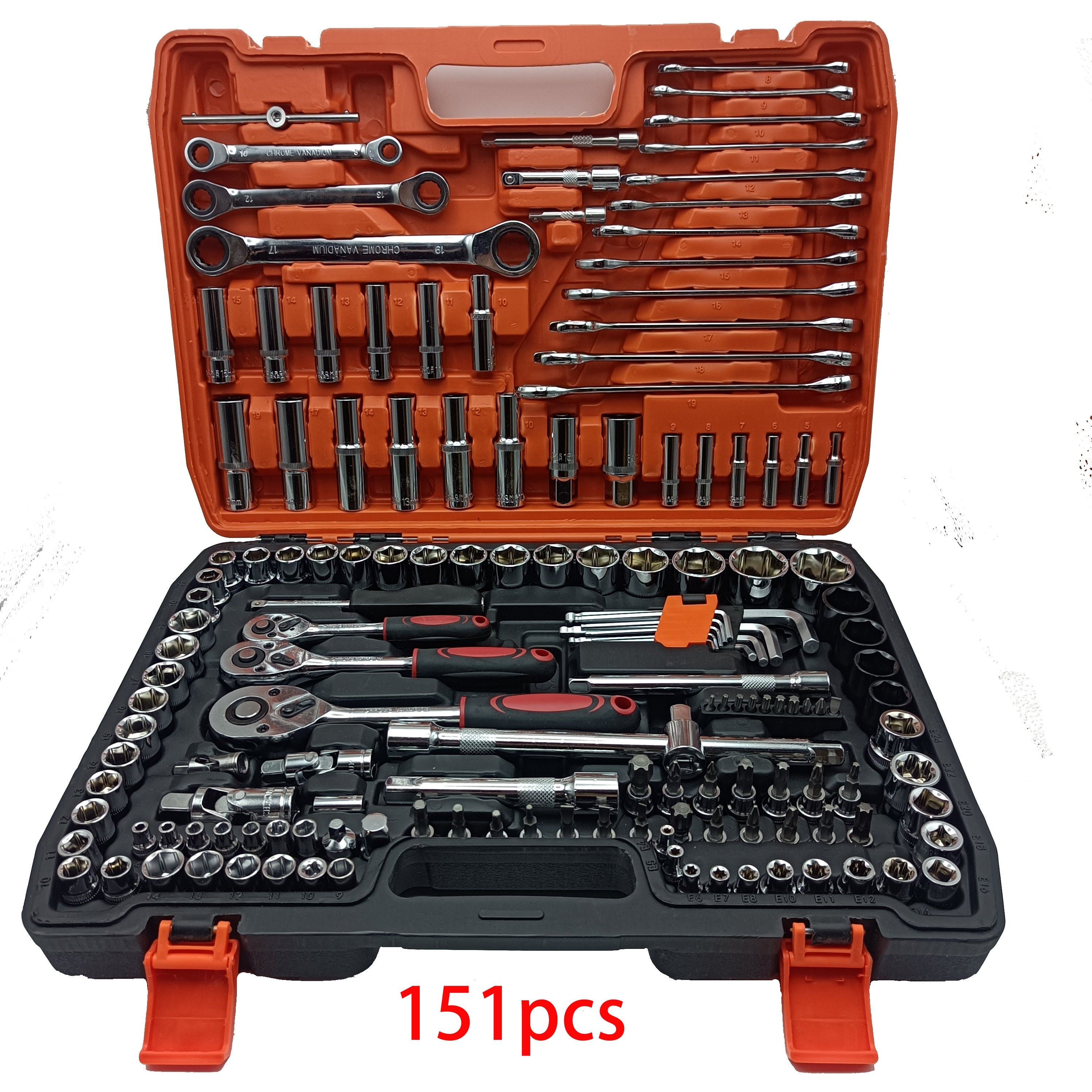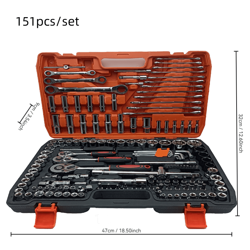 151 pezzi/53 pezzi/46 pezzi Scatola di strumenti per riparazioni auto multifunzionale Soluzione completa e tutto in uno, chiave dinamometrica a cricchetto di alta qualità e set di cacciaviti multifunzionale - Set di strumenti per riparazioni auto professi