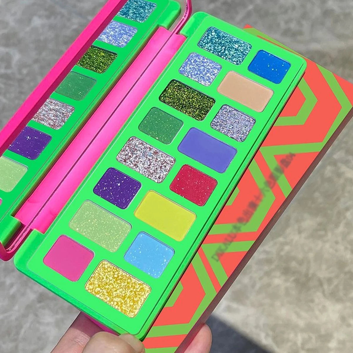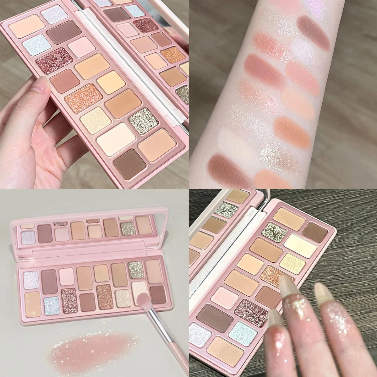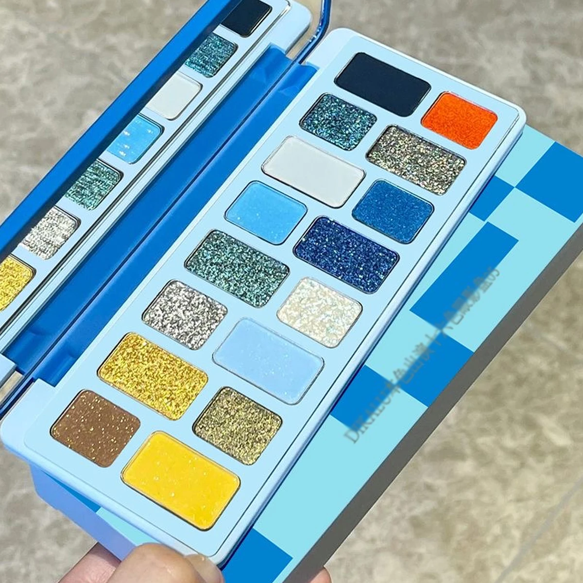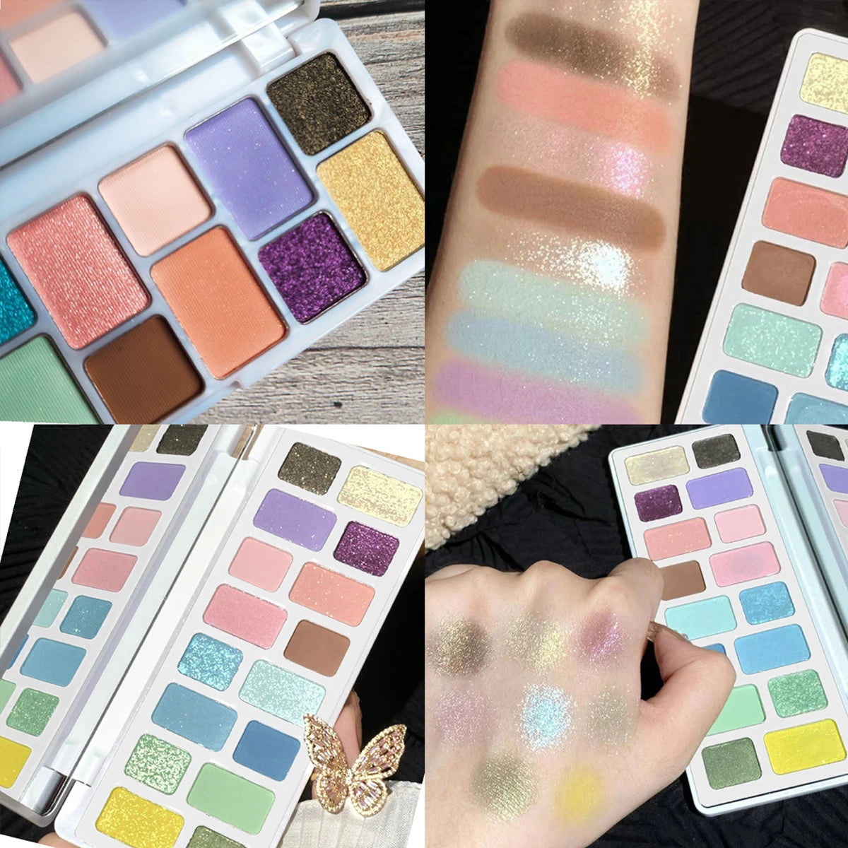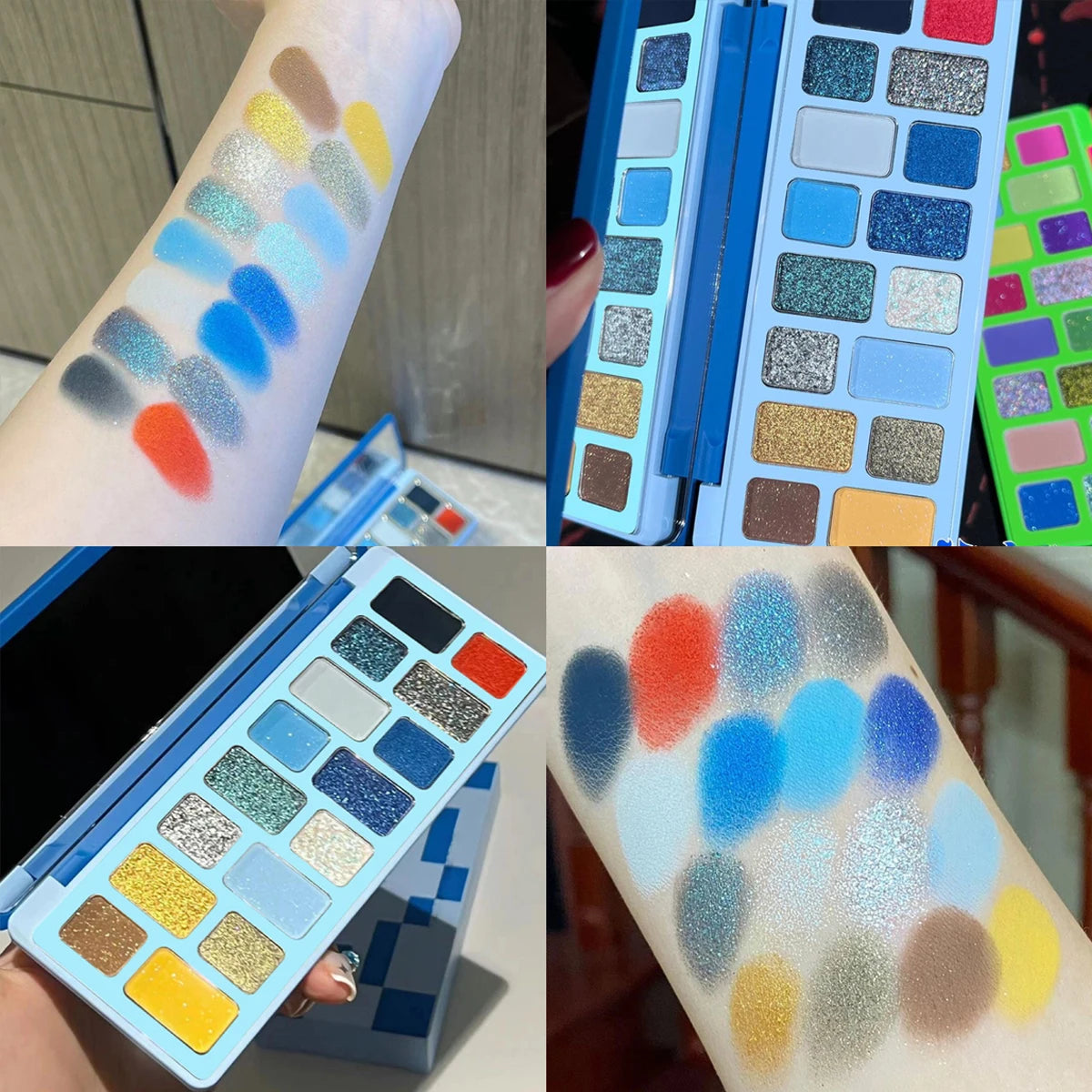 16 Colors of Dazzling Eyeshadow Pink Glitter Collision Blue Green Smoke Pearl Diamond Texture Multi Style Makeup Palette