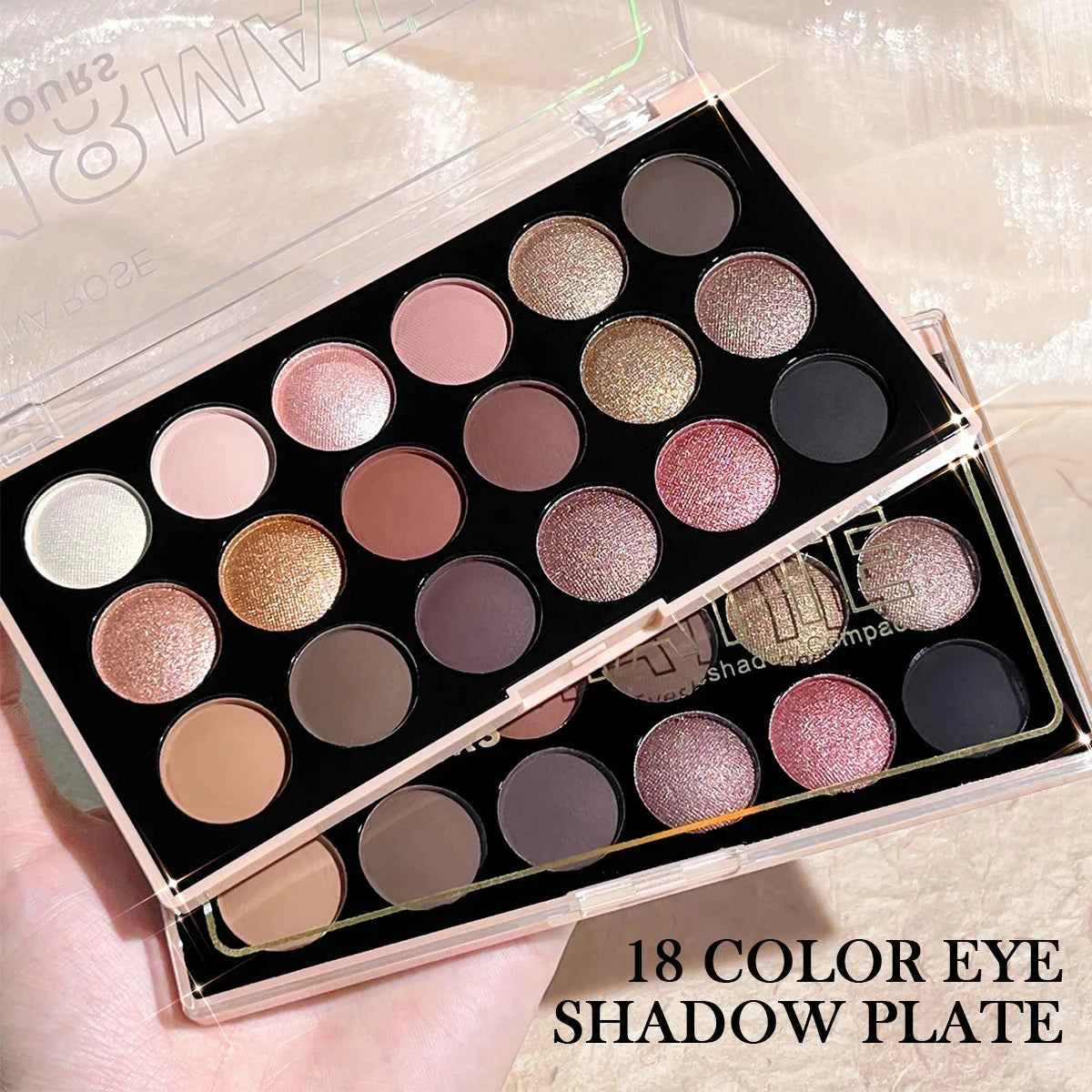 18-Color Eyeshadow Palette – Pearlescent, Matte, Fine Shimmer, Glitter, Earth Tones, Long-Lasting, High-Performance